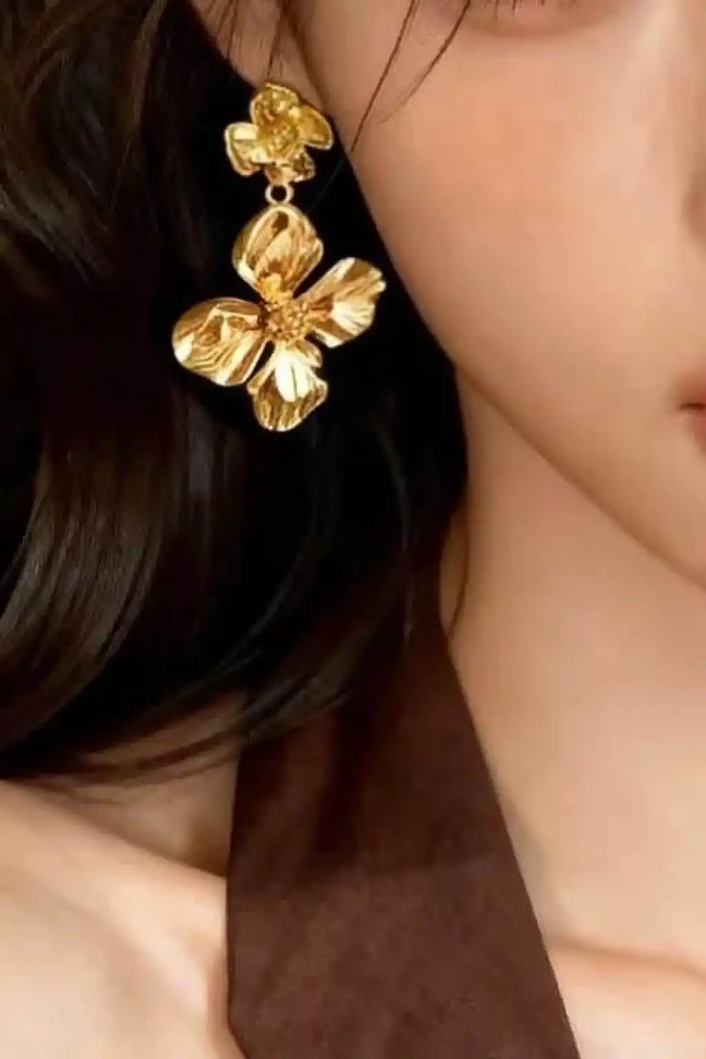Altın Renk Çiçek Figürlü Çelik Küpe (Çift)