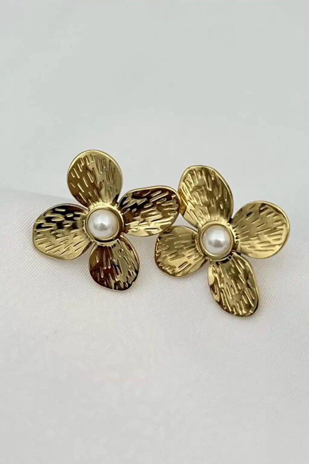 Altın Renk Çiçek Figürlü Çelik Küpe (Çift)