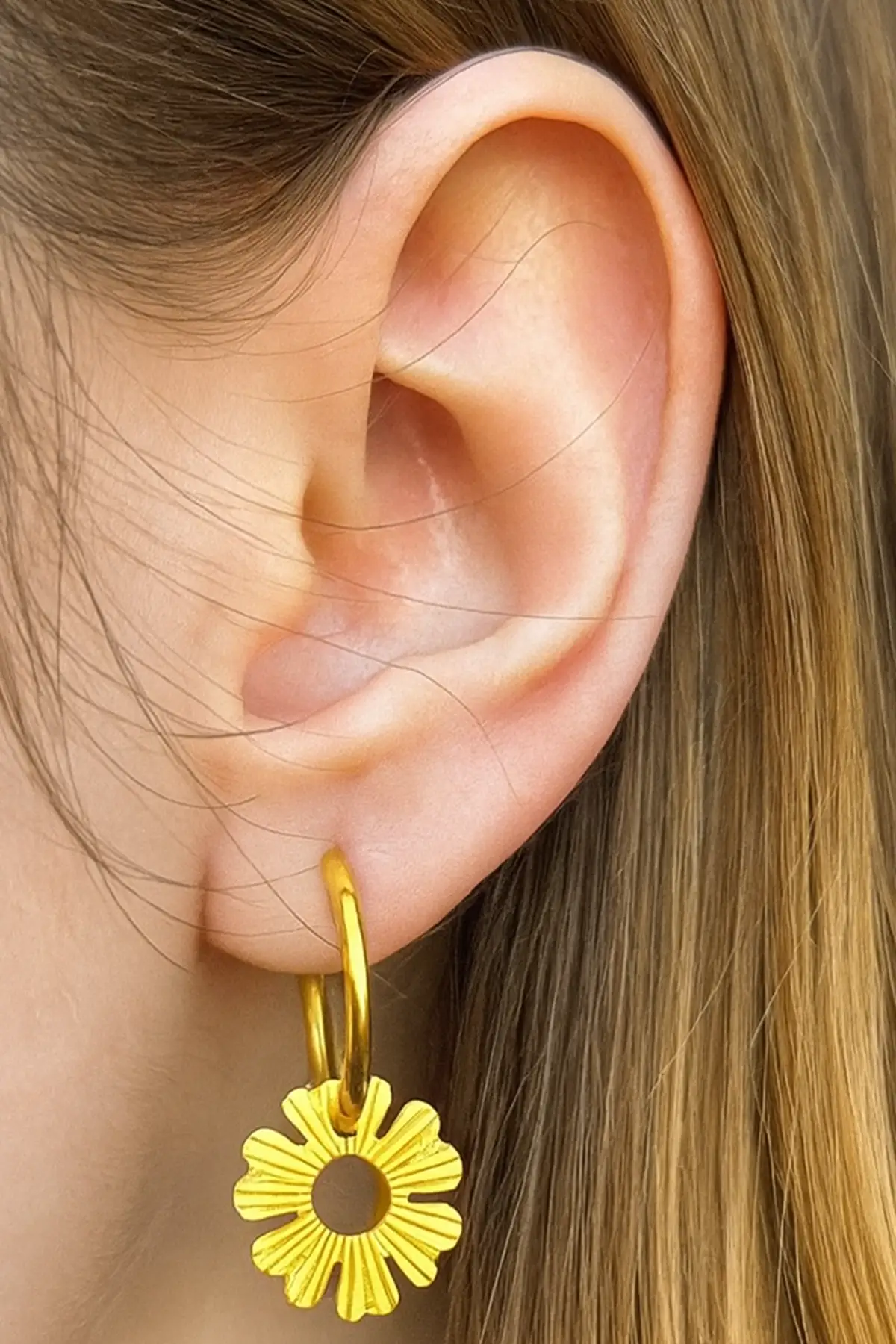Altın Renk Çiçek Figürlü Çelik Küpe (Çift)