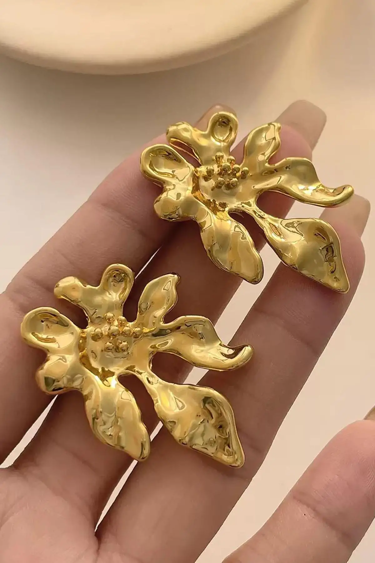 Altın Renk Çiçek Figürlü Küpe (Çift)
