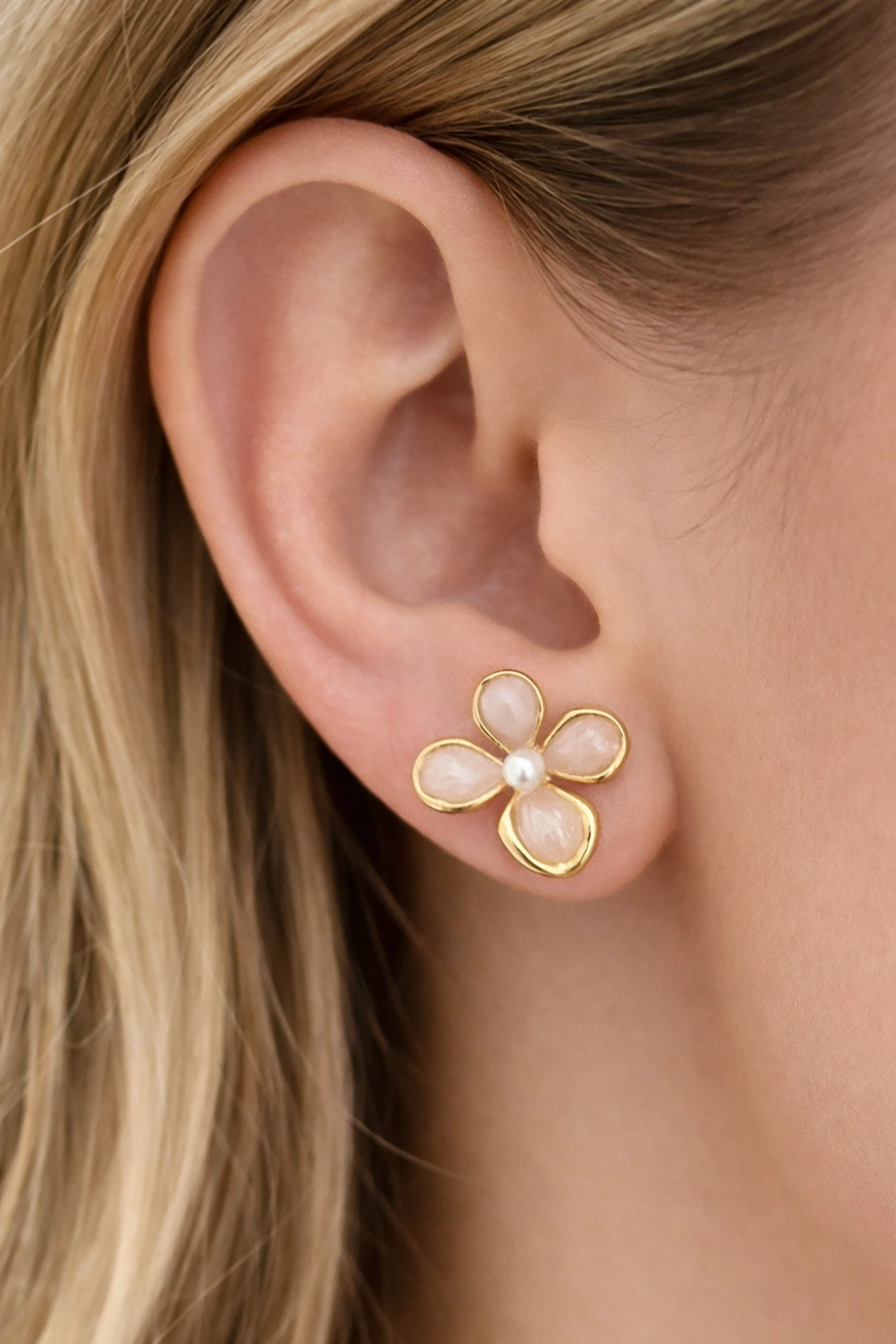 Altın Renk Çiçek Figürlü Küpe (Çift)