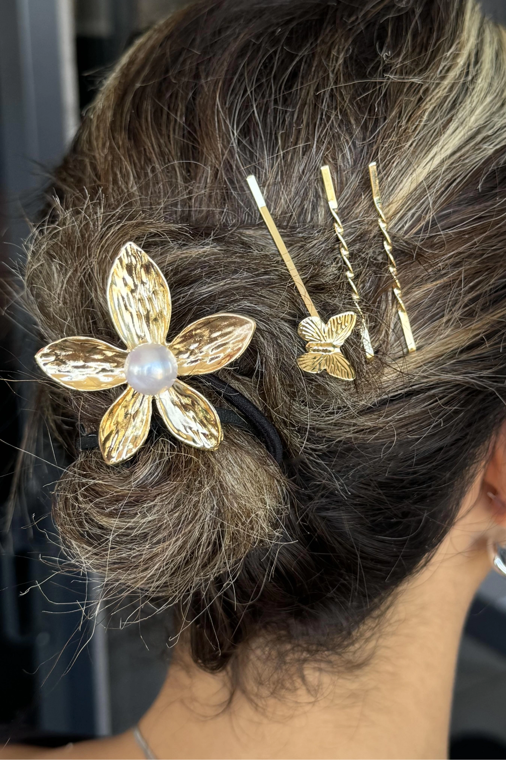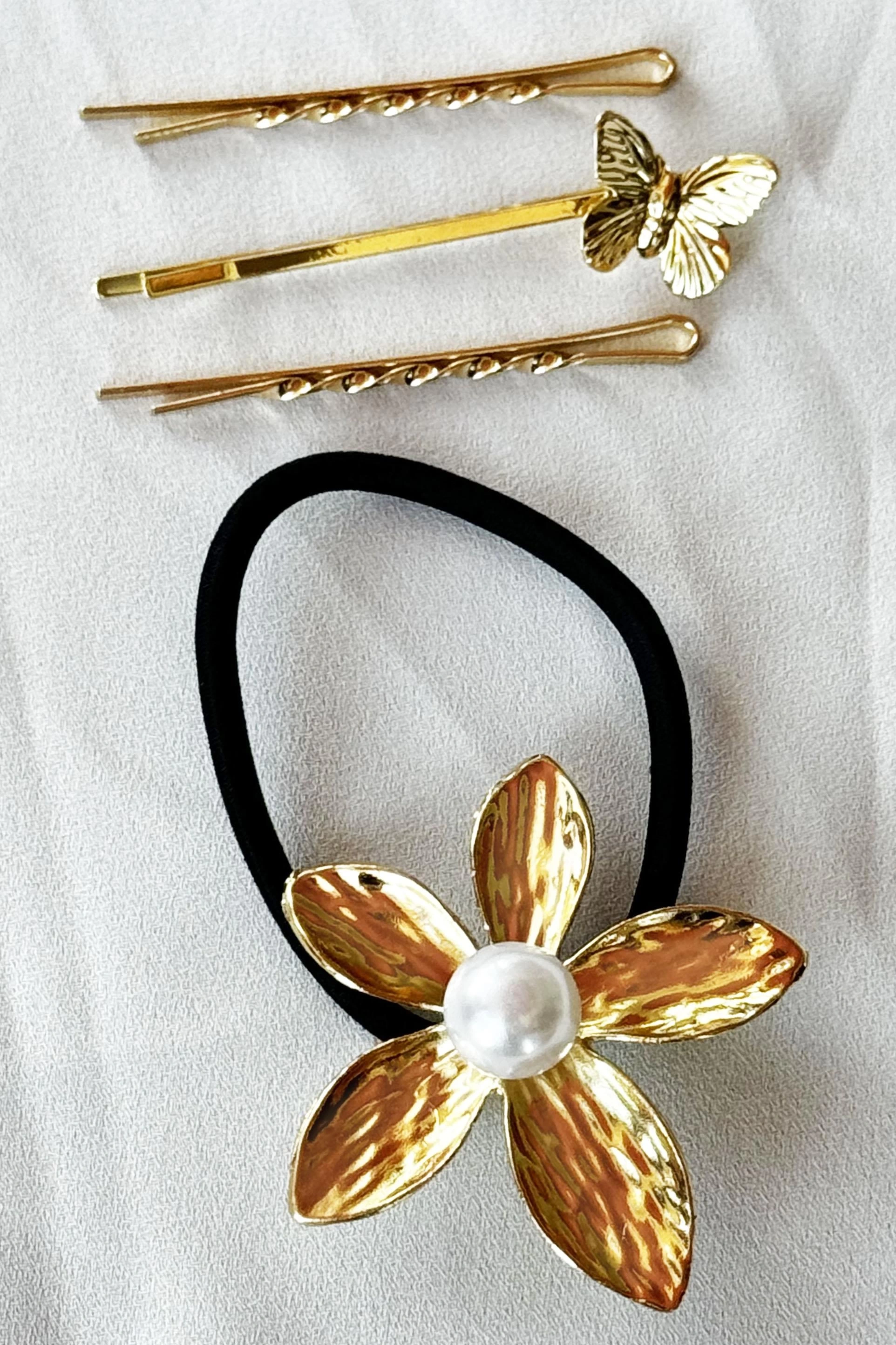Altın Renk Çiçek Figürlü Lastik Toka Ve Tel Toka Set
