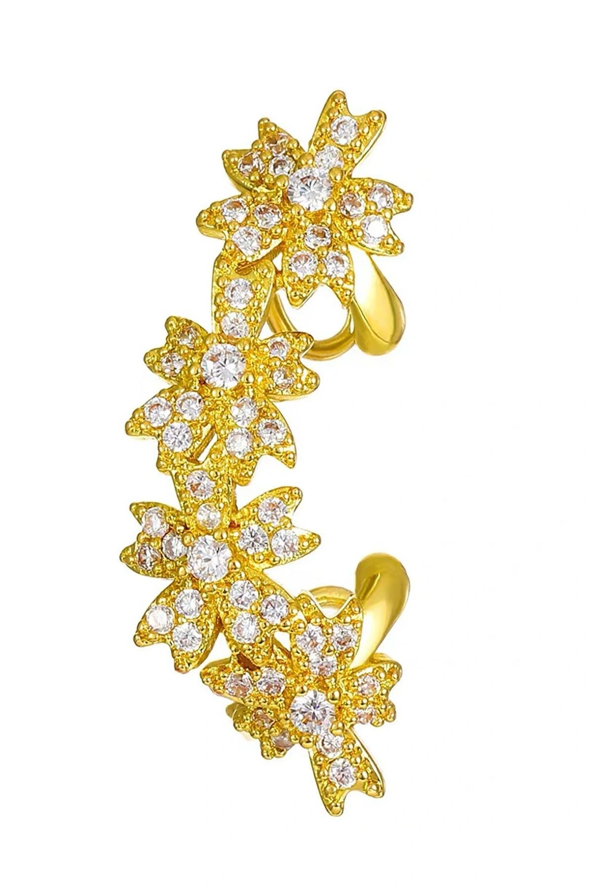 Altın Renk Çiçek Figürlü Taş Detaylı Ear Cuff (Tek)