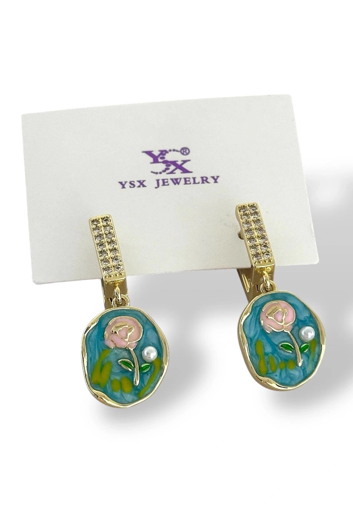 Altın Renk Çiçek Figürlü Taş Detaylı YSX Küpe