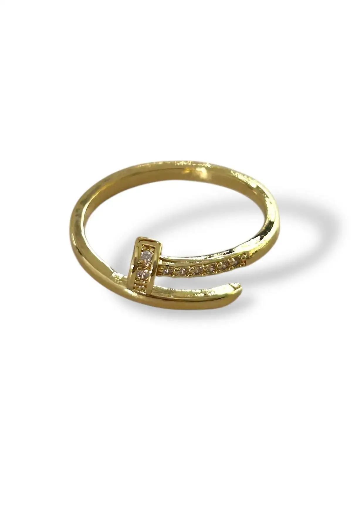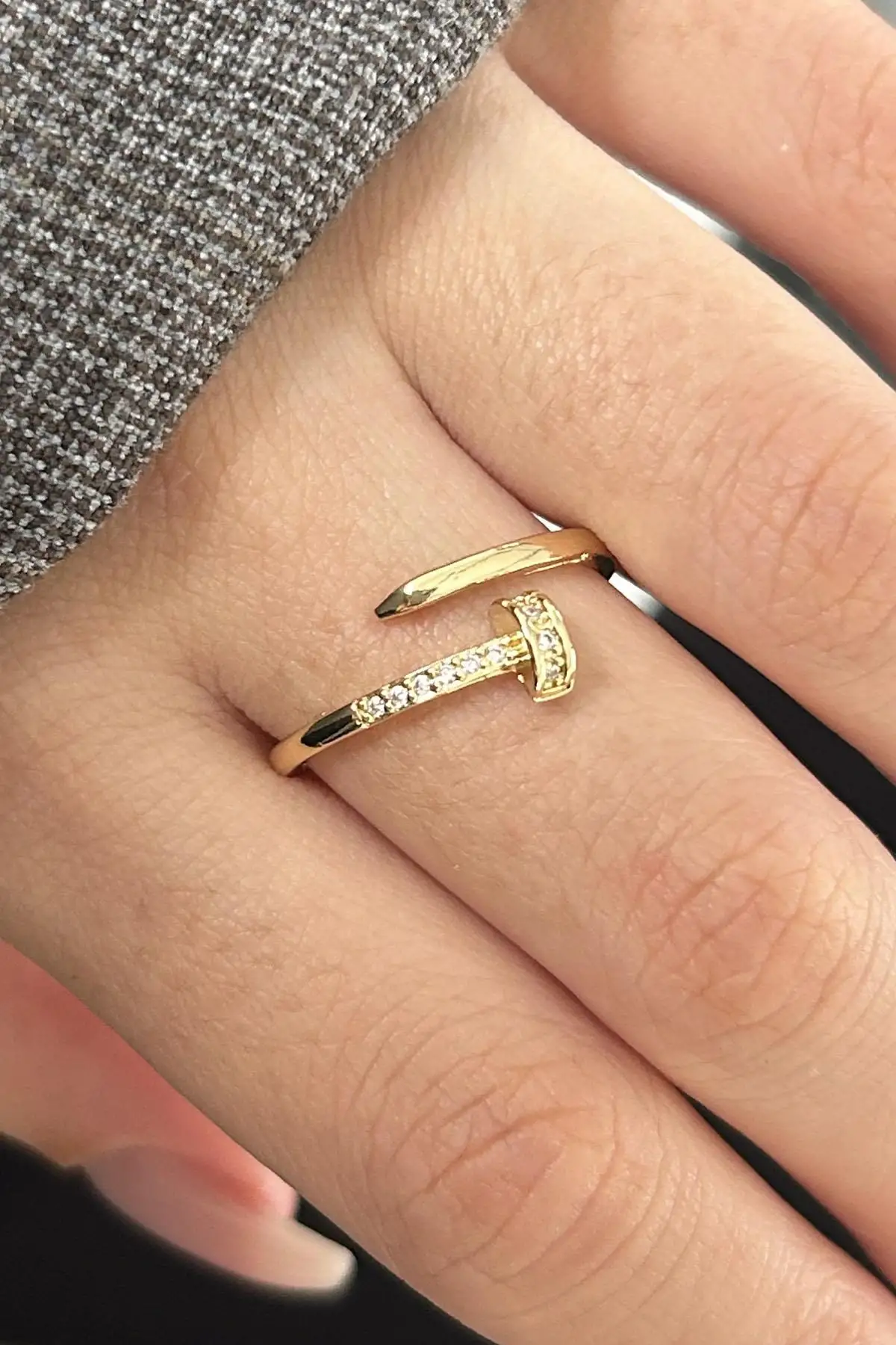 Altın Renk Çivi Figürlü Taş Detaylı Ayarlanabilir Yüzük