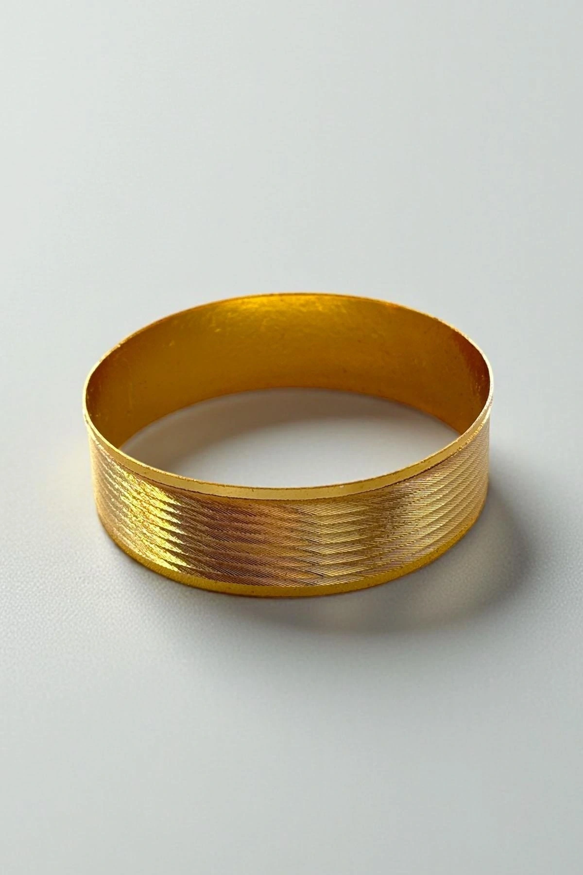 Altın Renk Çizgi Detaylı Kalın Bilezik