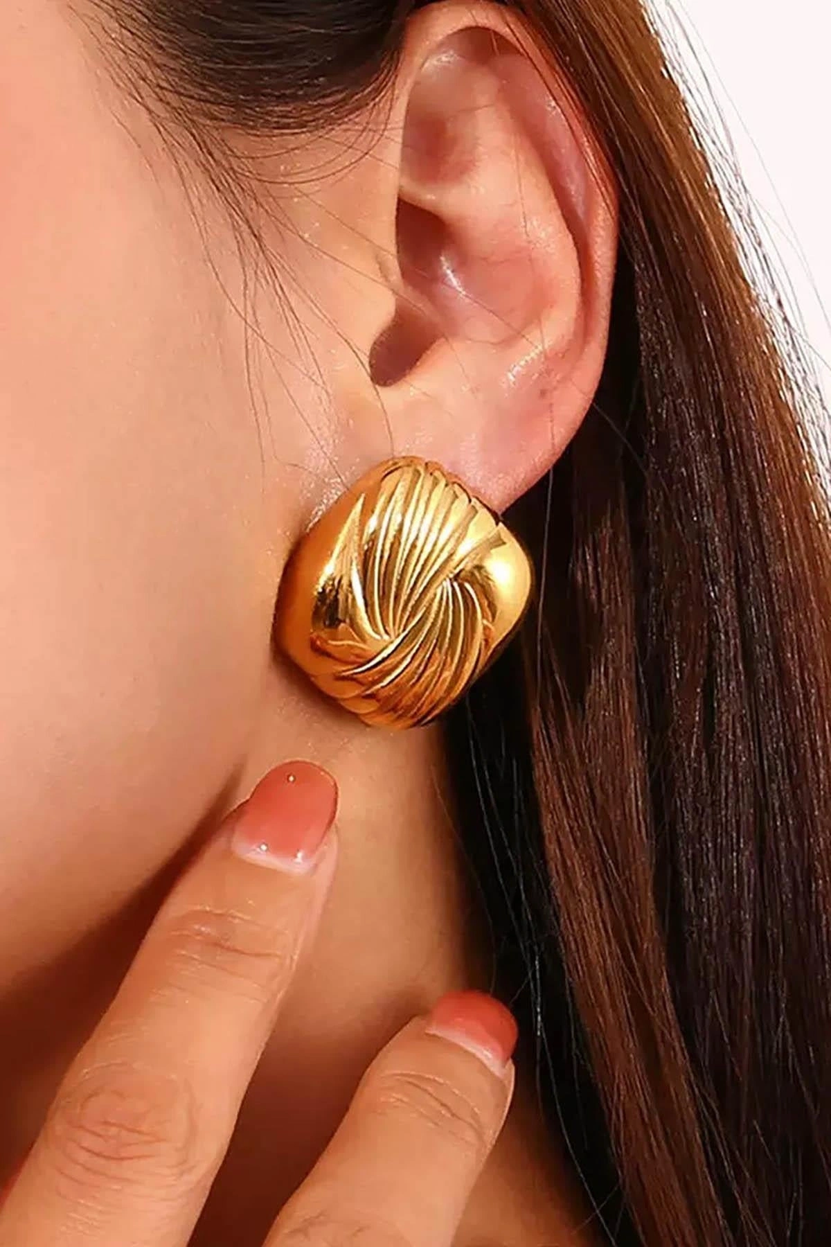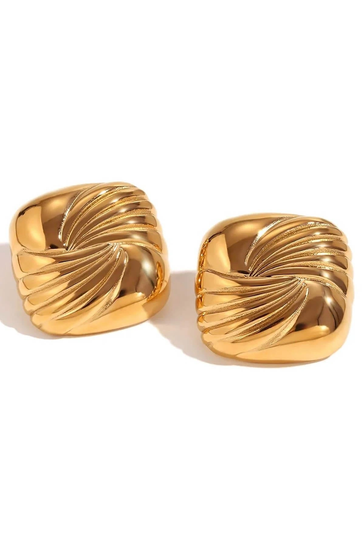 Altın Renk Çizgi Detaylı Çelik Küpe (Çift)