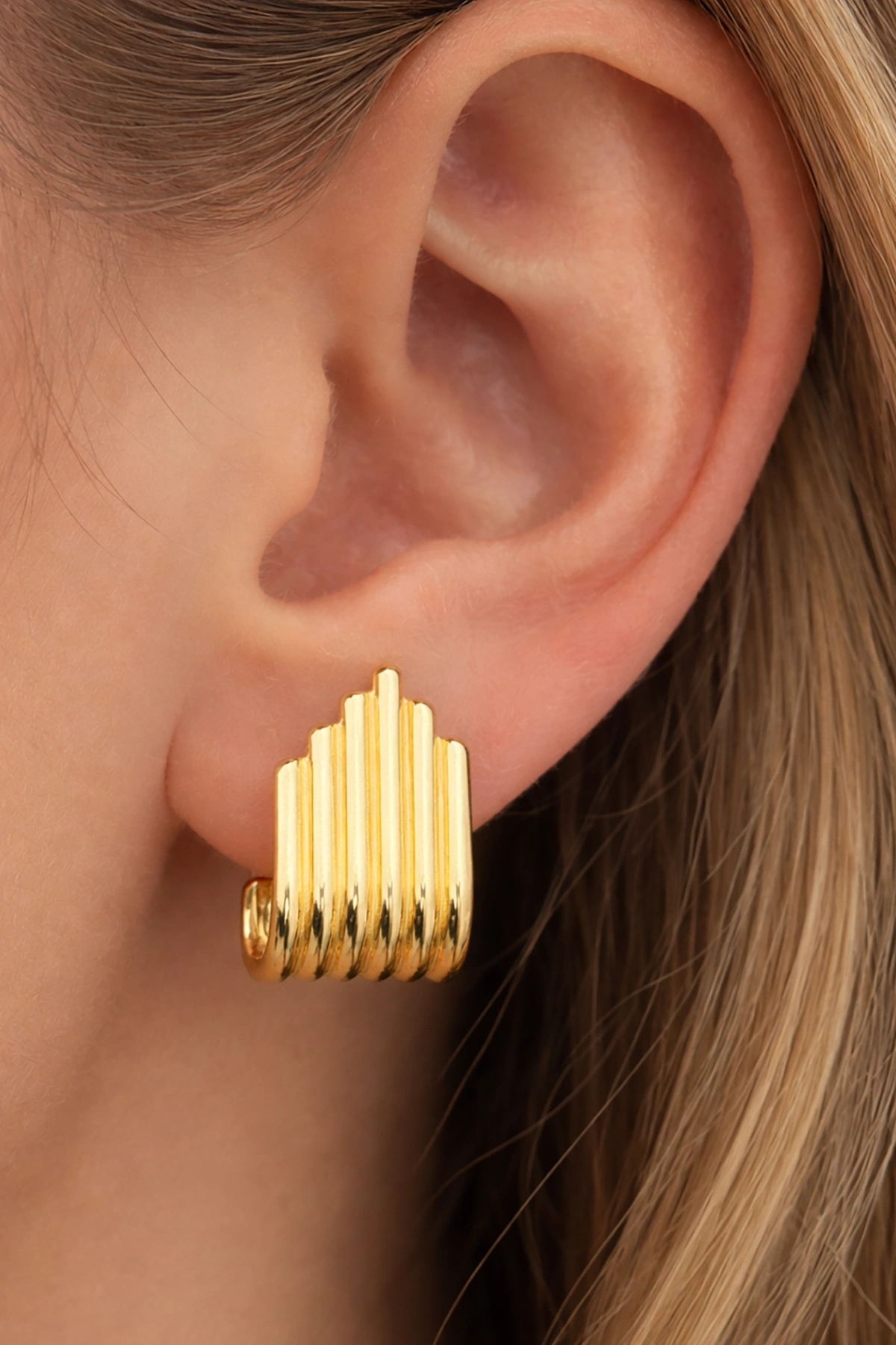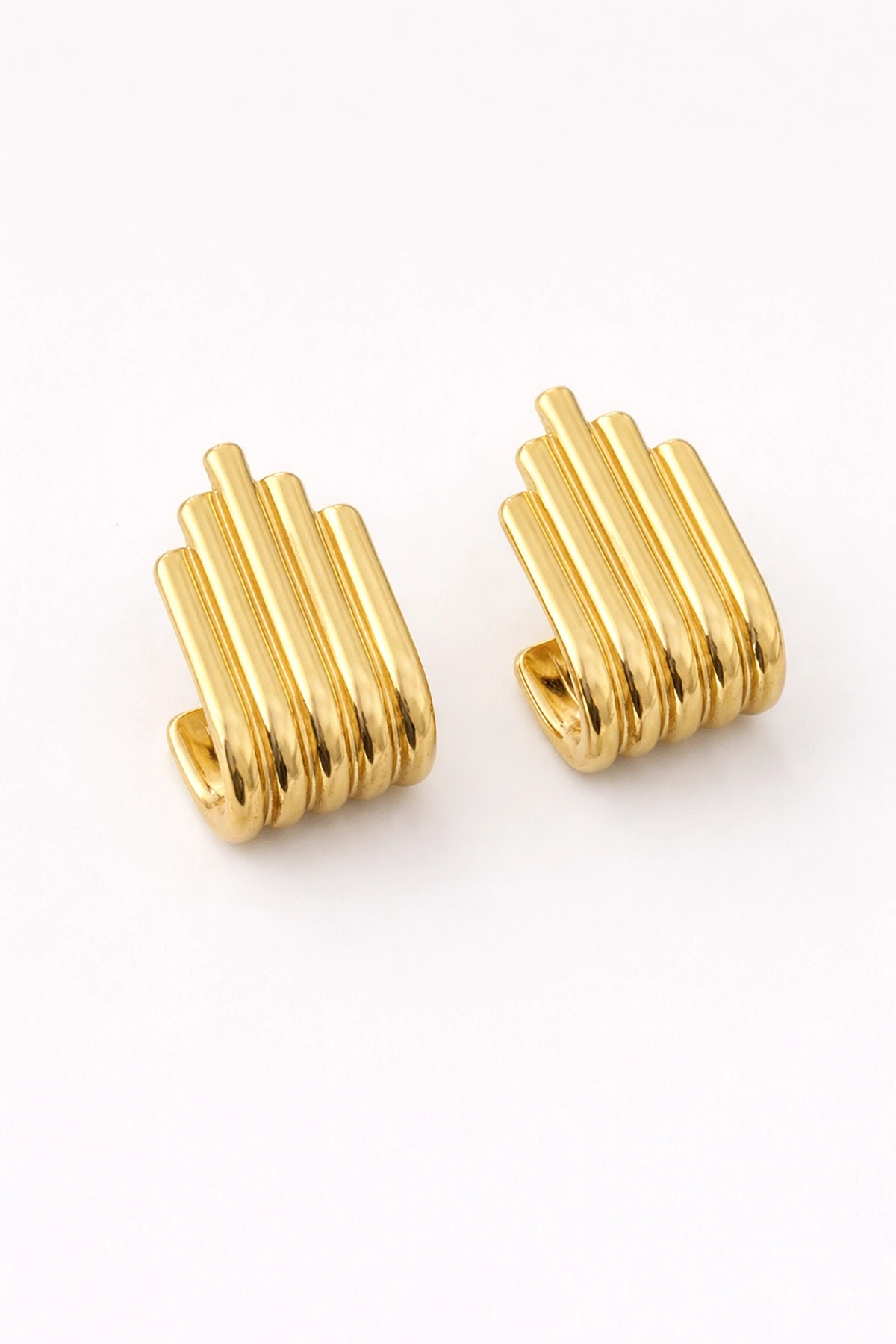 Altın Renk Çizgi Detaylı Çelik Küpe (Çift)