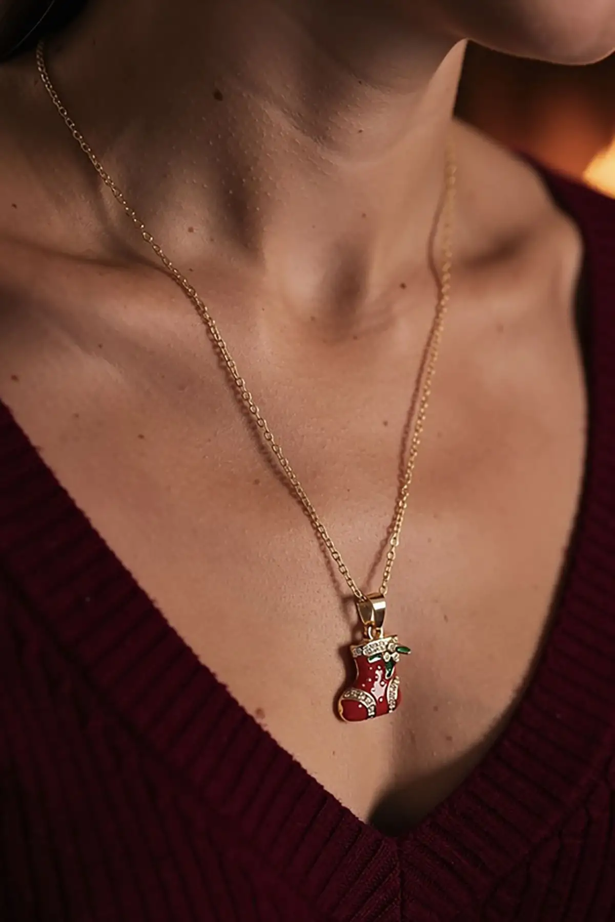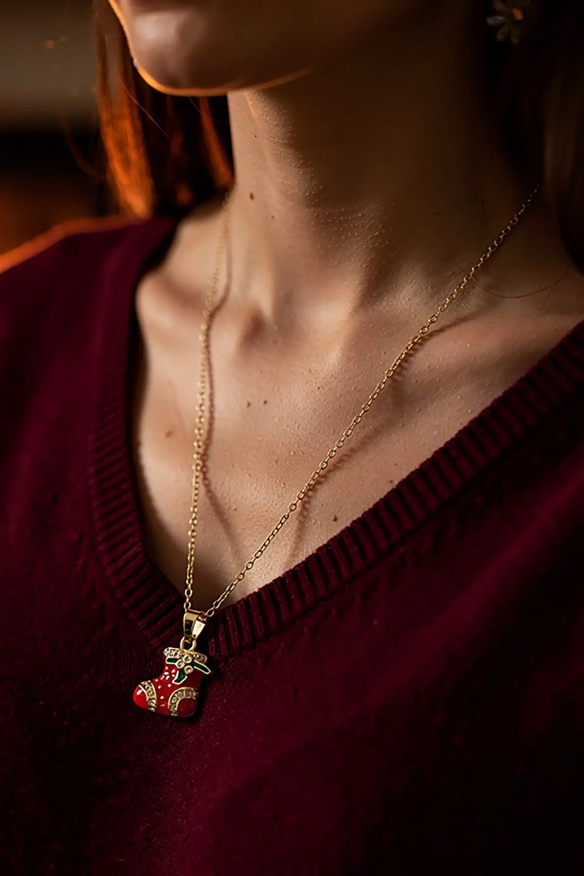 Altın Renk Çorap Figürlü Çelik Yılbaşı Kolyesi