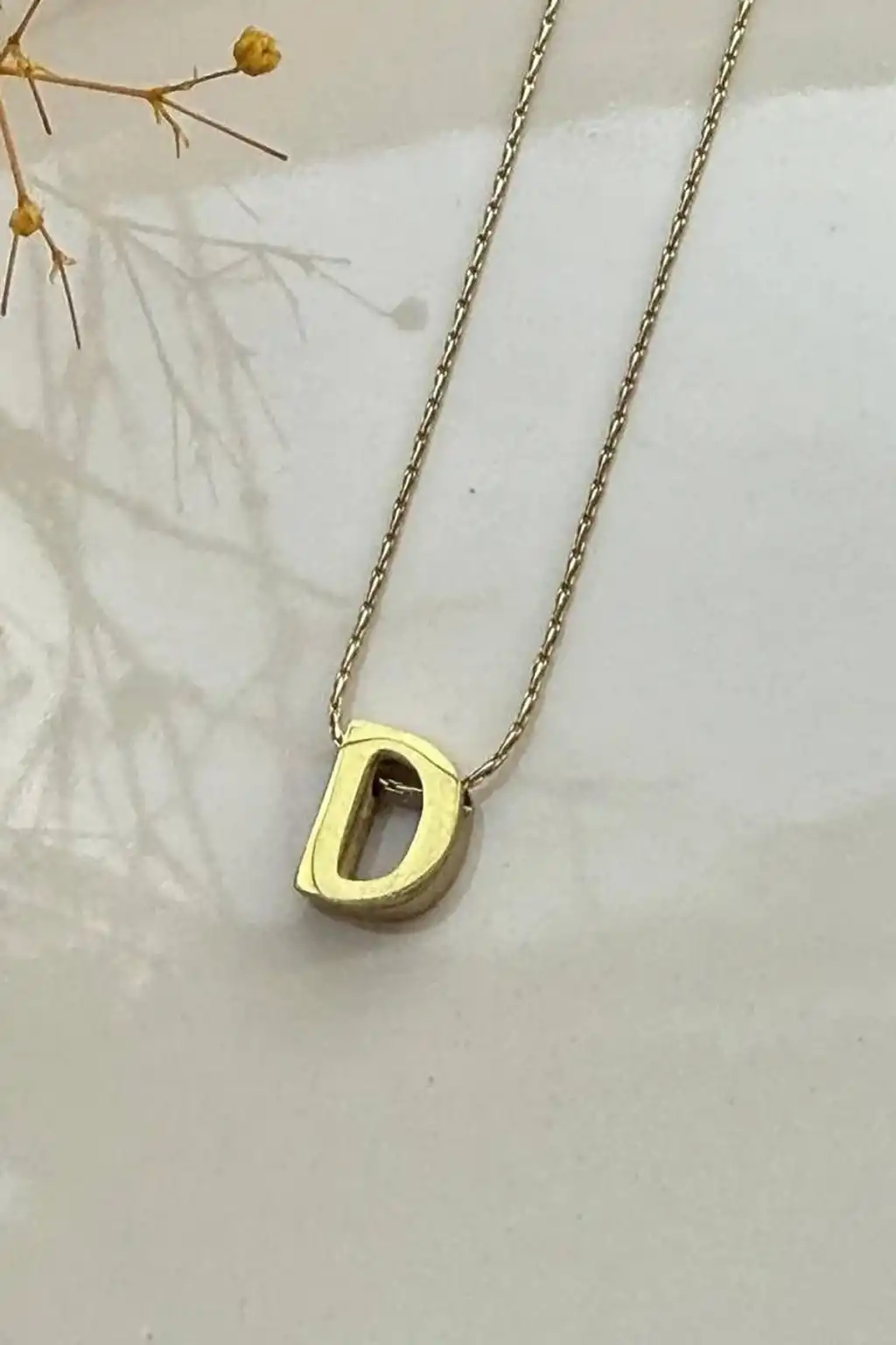 Altın Renk K Harfli Taş Detaylı Çelik Kolye