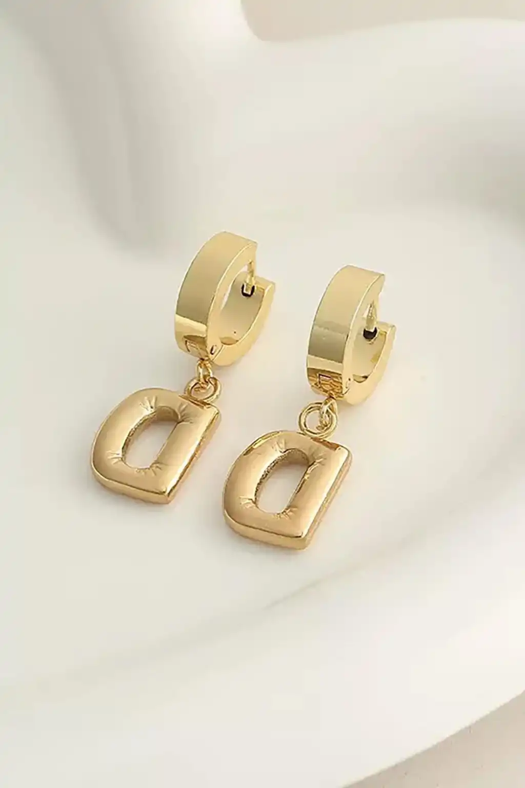 Altın Renk Yaprak Figürlü Çelik Küpe (Çift)