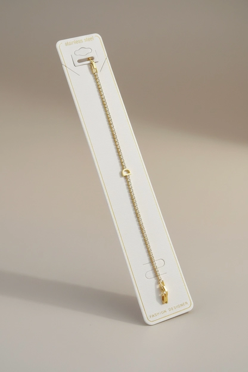 Altın Renk D Harfli Taş Detaylı Çelik Bileklik