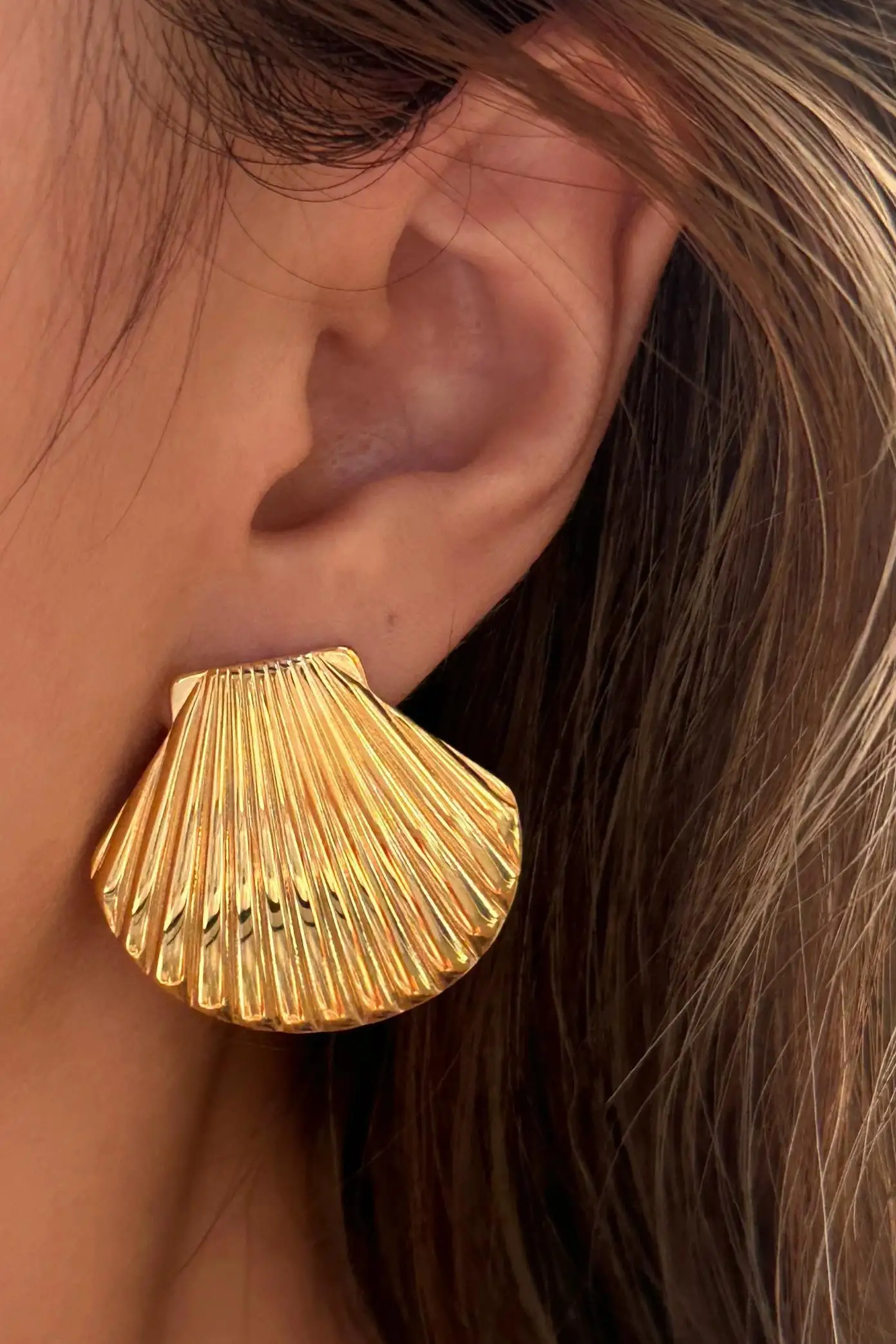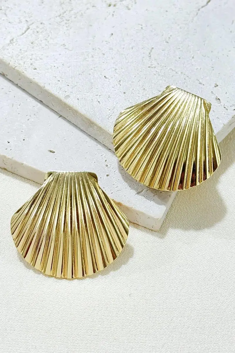 Altın Renk Deniz Kabuğu Figürlü Çelik Küpe (Çift)