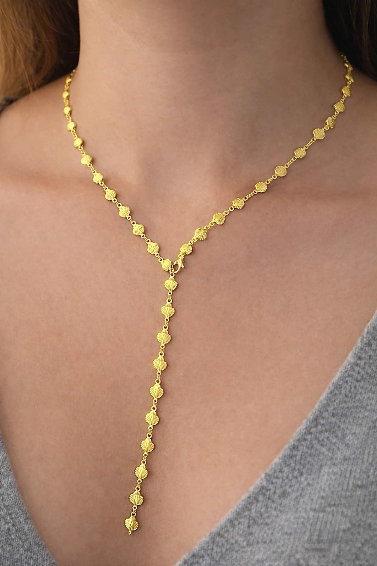 Altın Renk Deniz Kabuğu Figürlü Çelik Y Kolye