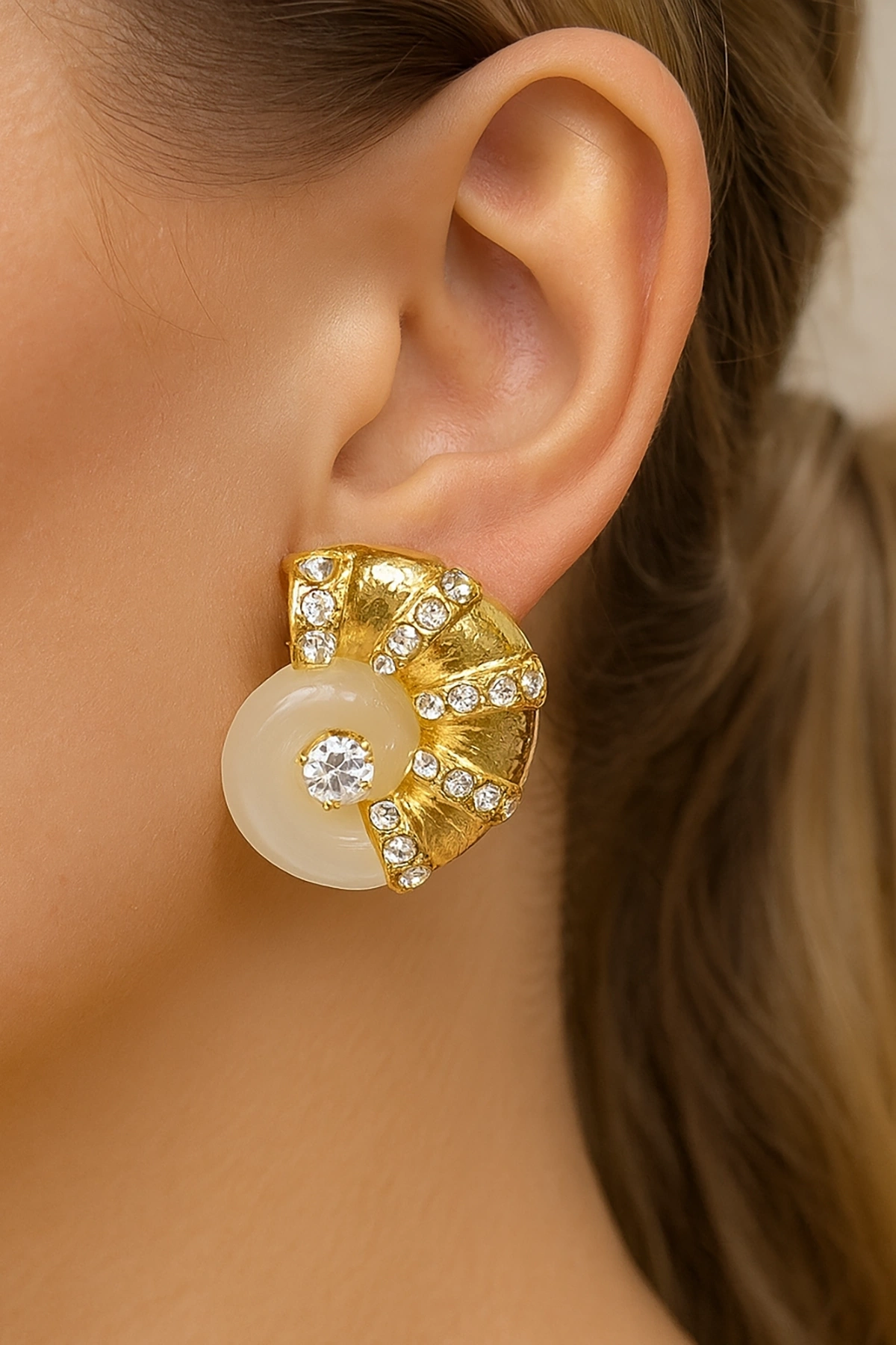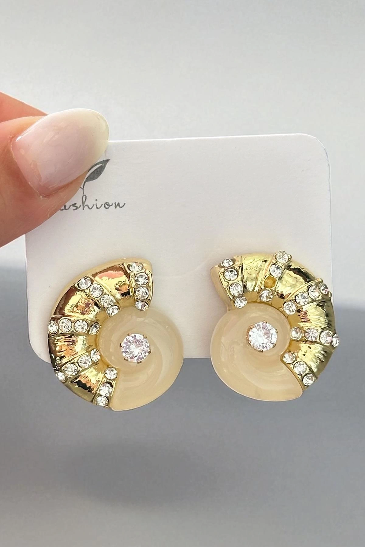 Altın Renk Deniz Kabuğu Figürlü Taş Detaylı Küpe (Çift)
