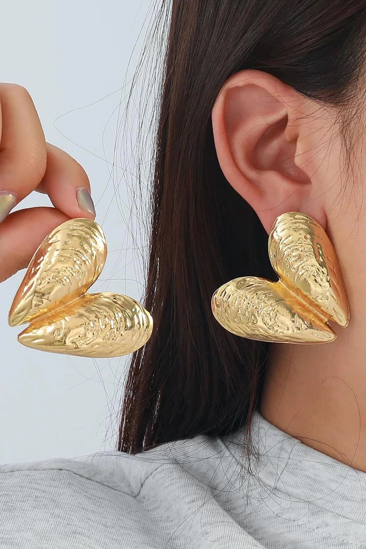 Altın Renk Deniz Kabuğu Figürlü Tasarım Küpe(Çift)