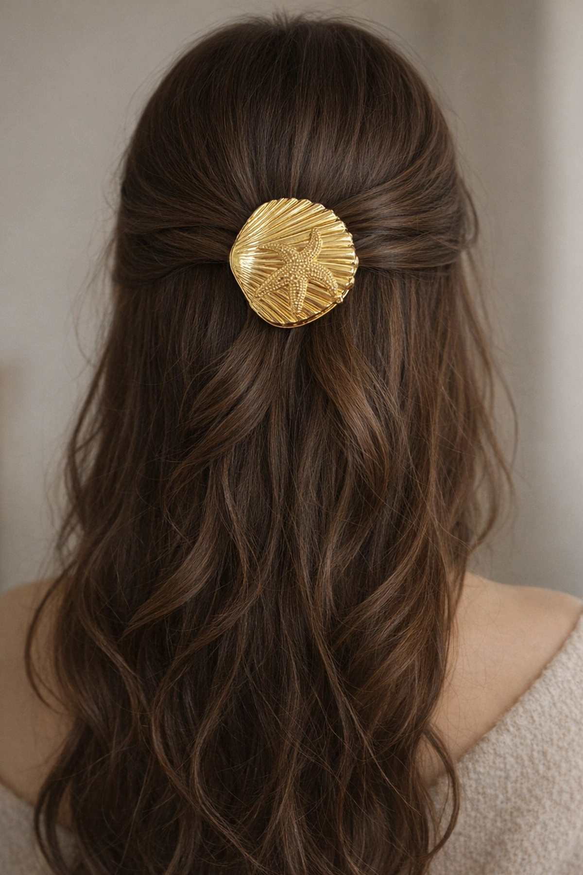 Altın Renk Deniz Yıldızı Detaylı Metal Mandal Toka