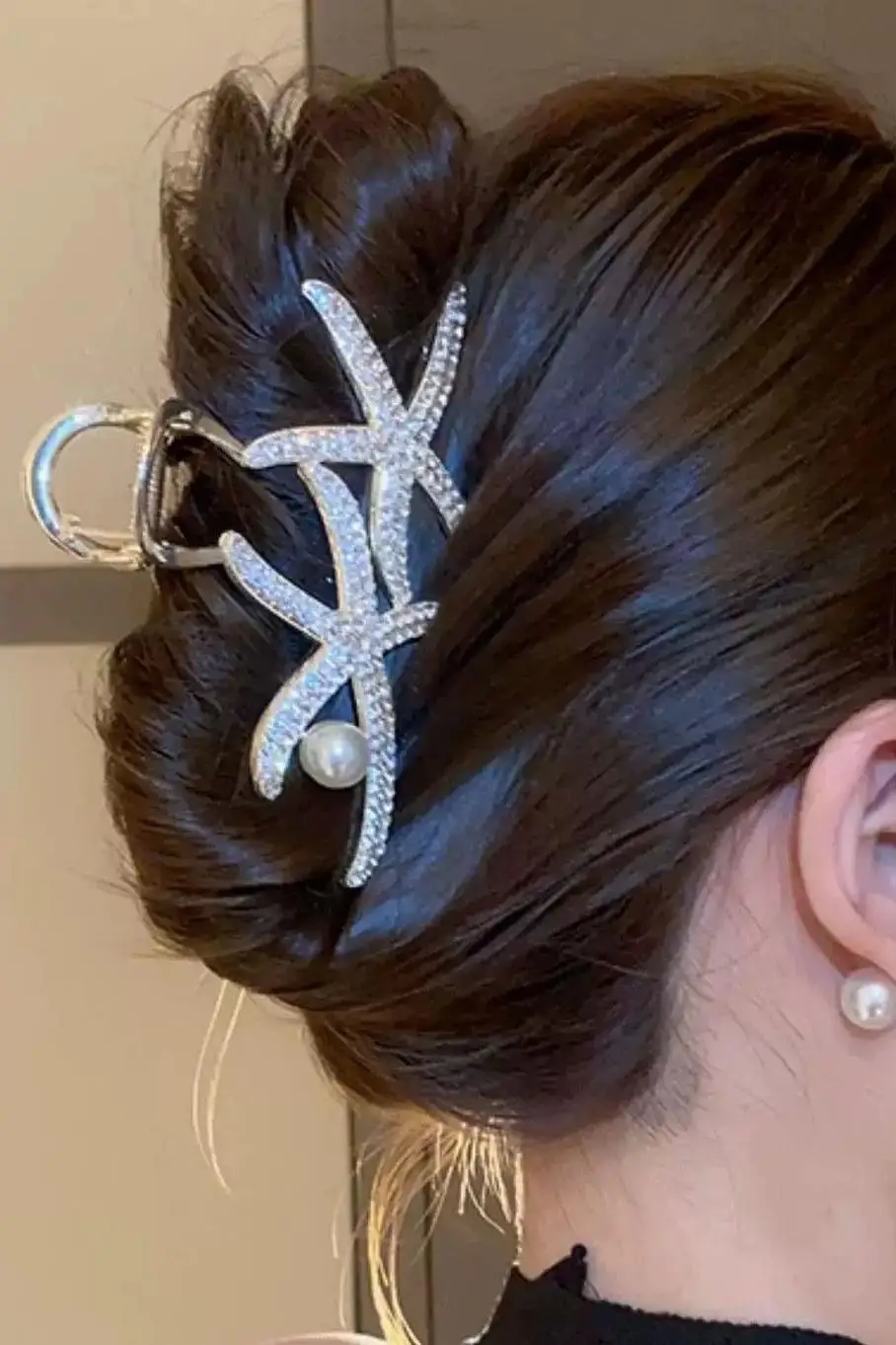 Altın Renk Deniz Yıldızı Figürlü İnci Detaylı Taşlı Metal Mandal Toka