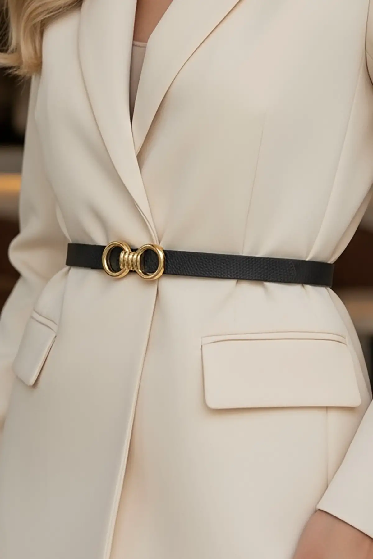 Altın Renk Deri Detaylı Kadın Kemer