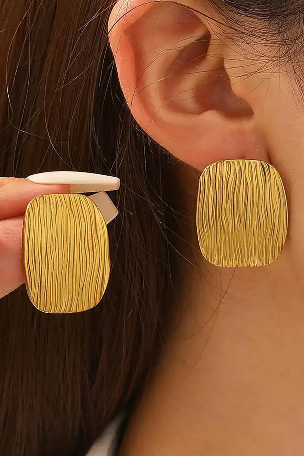 Altın Renk Dikdörtgen Çelik Küpe (Çift)
