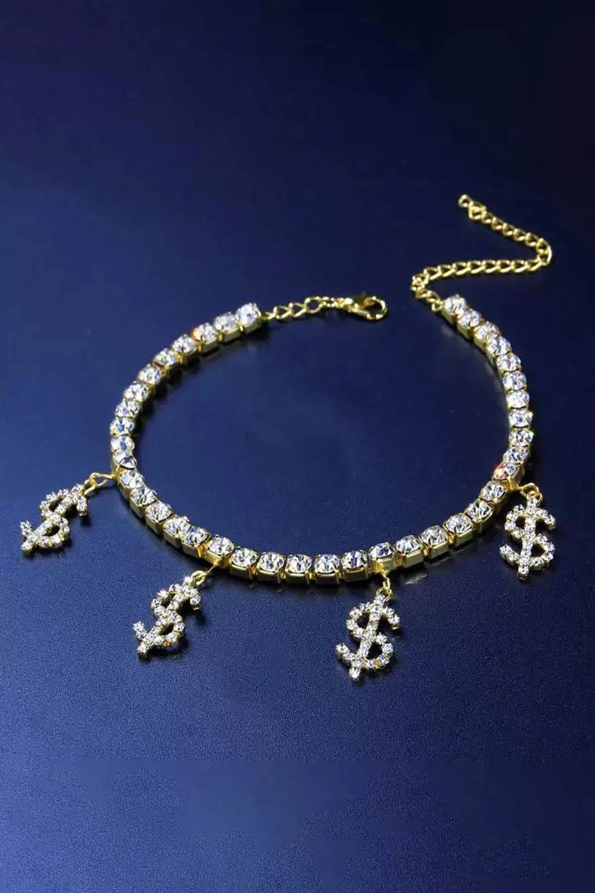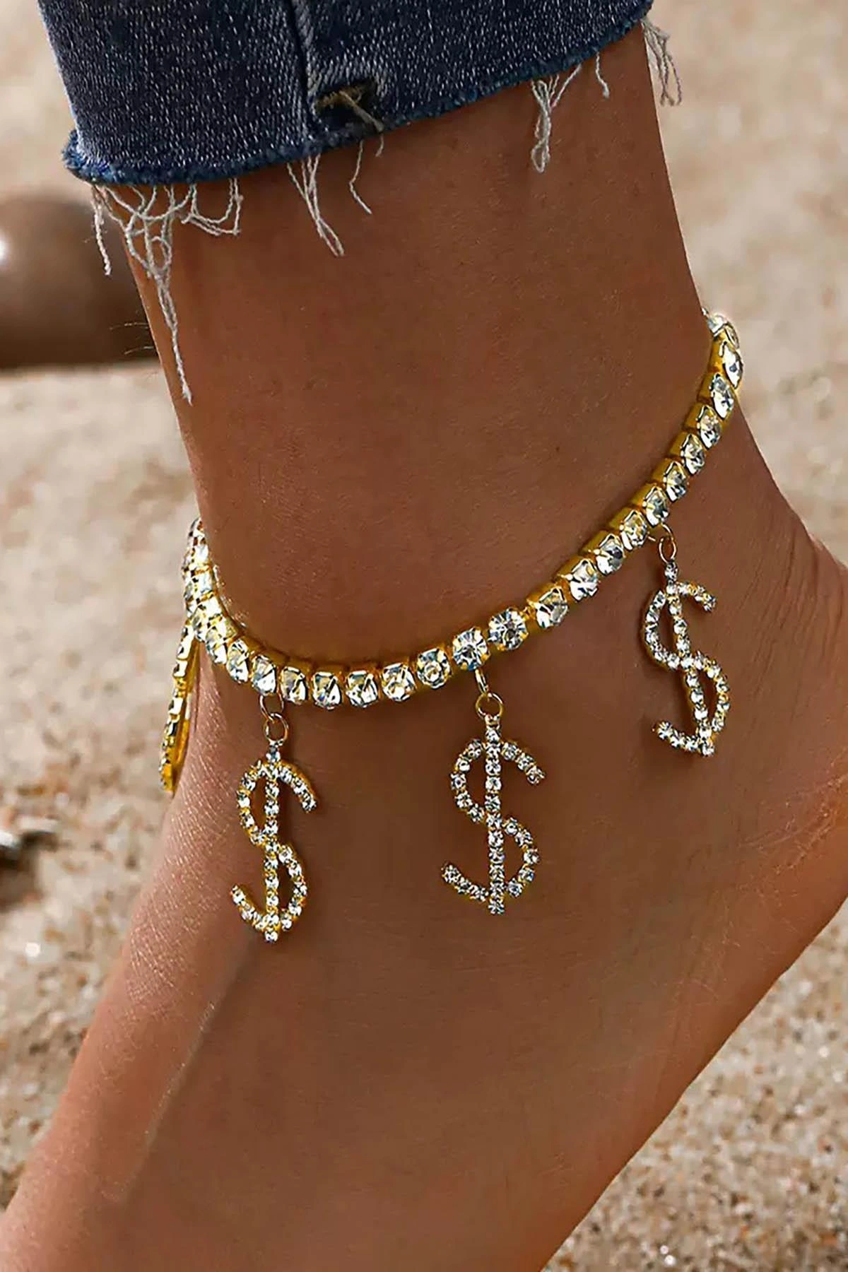 Altın Renk Dolar Figürlü Taş Detaylı Tasarım Halhal