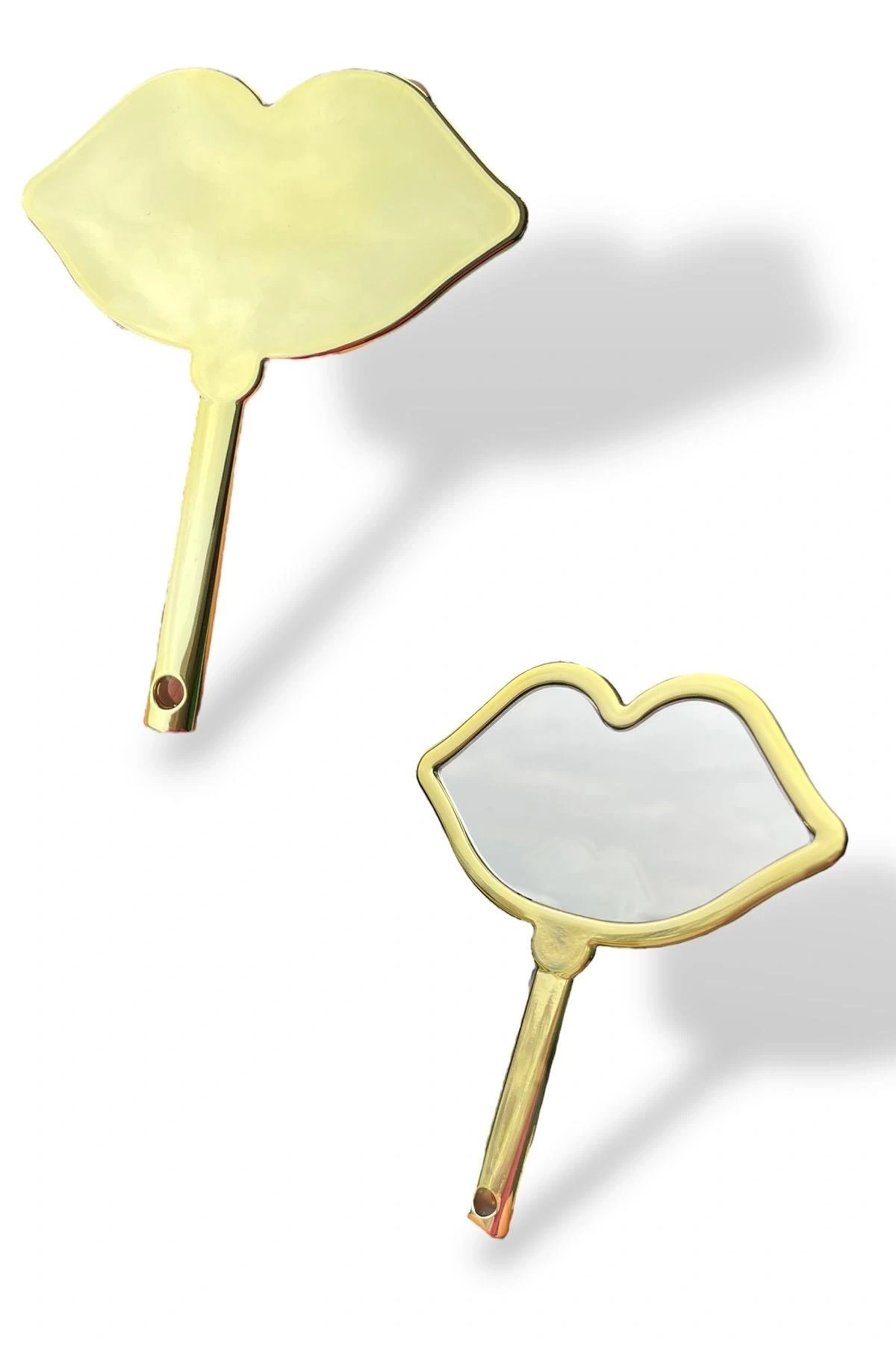 Altın Renk Dudak Detaylı El Aynası