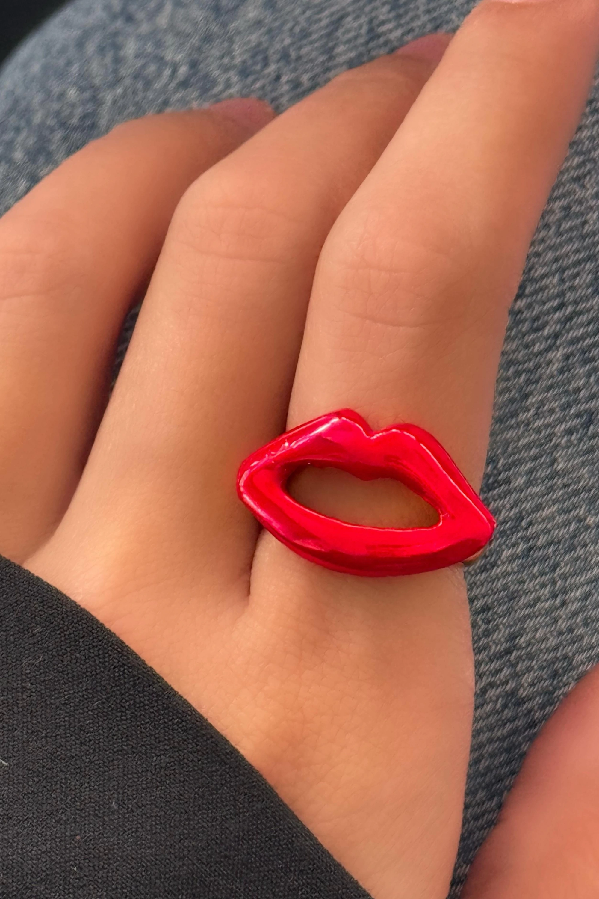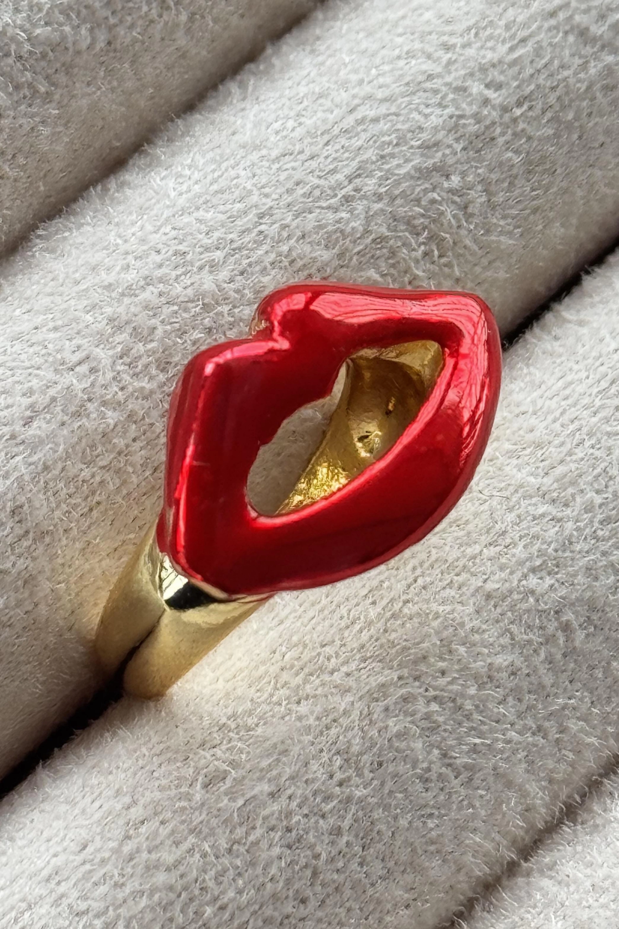 Altın Renk Dudak Figürlü Metal Ayarlanabilir Yüzük