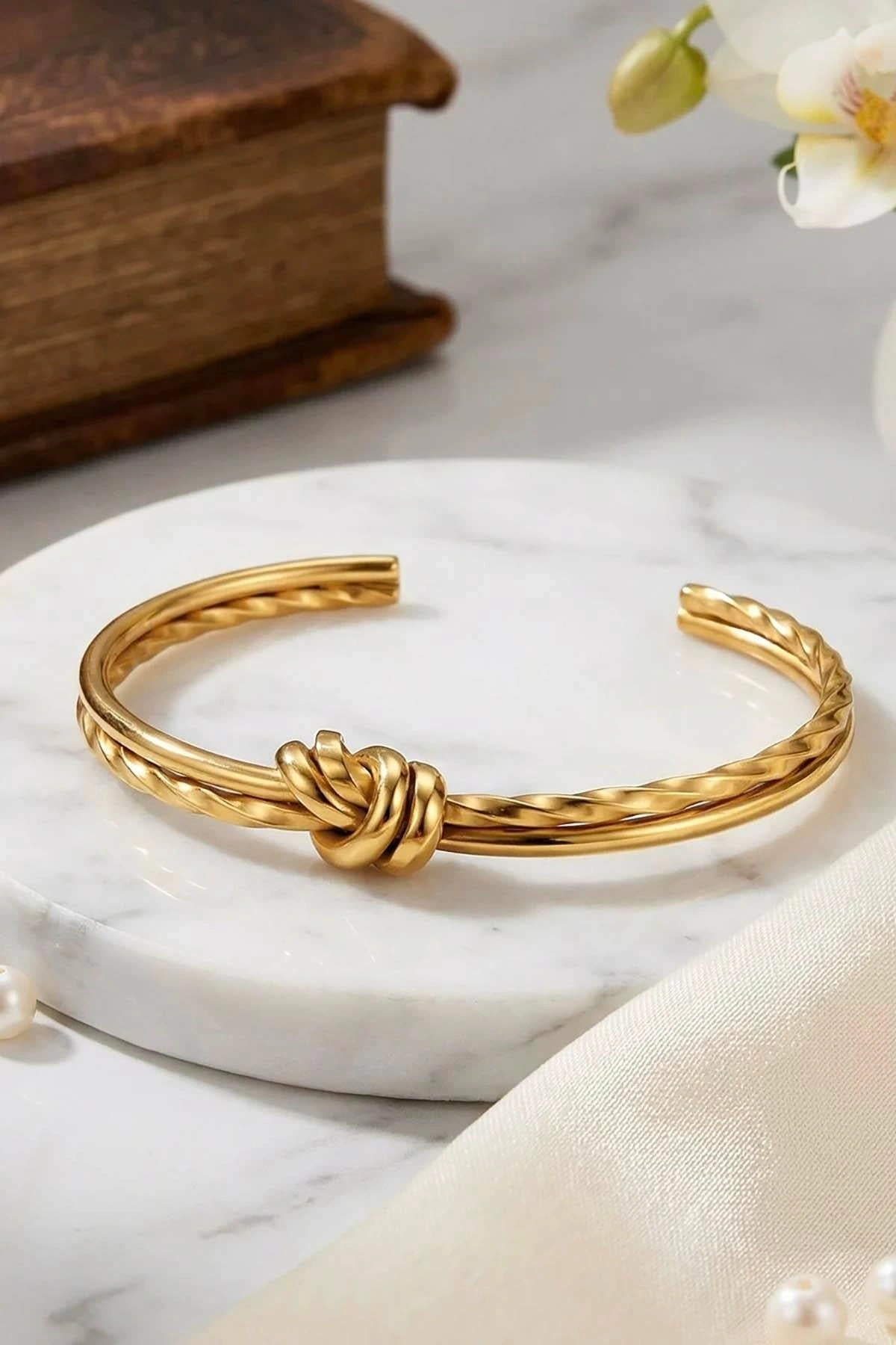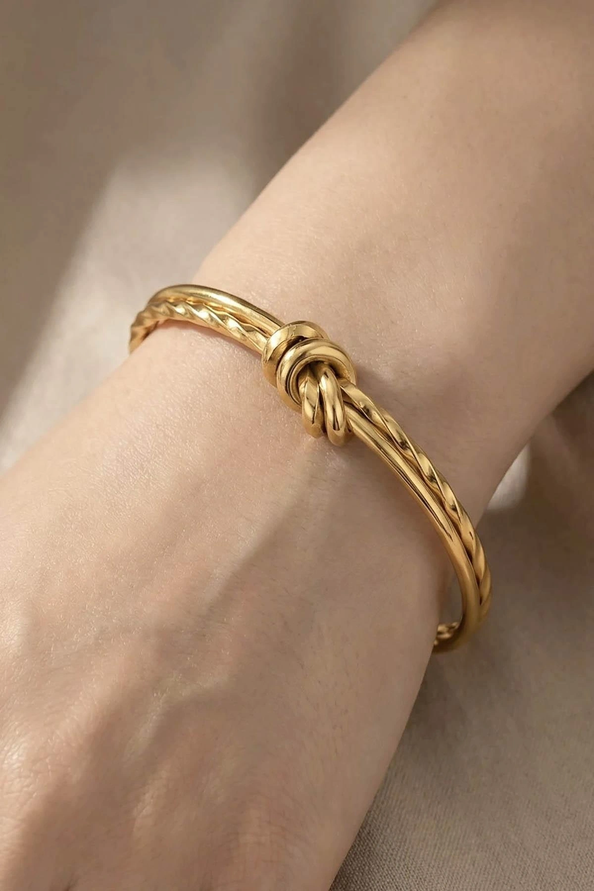 Altın Renk Düğüm Detaylı Kelepçe/ Bileklik