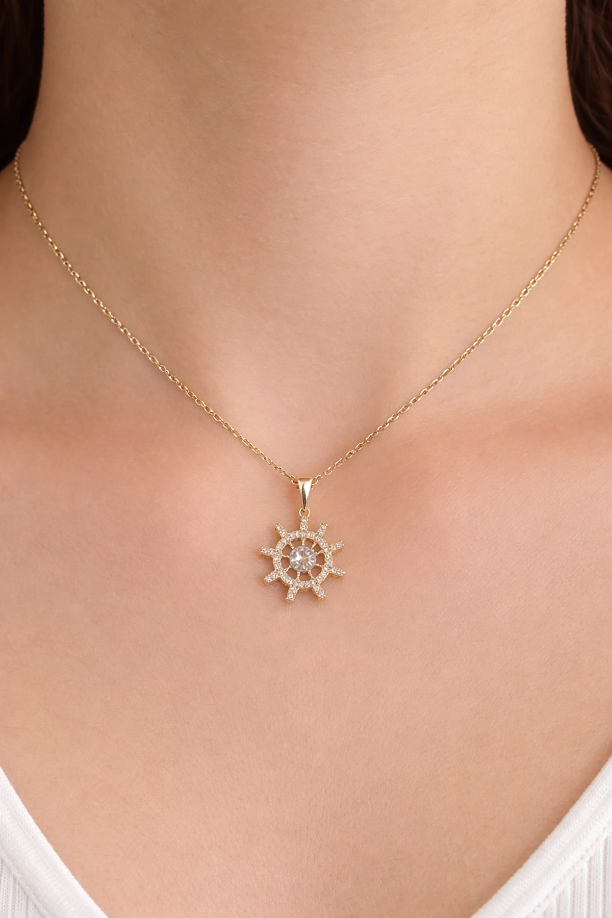 Altın Renk Dümen Detaylı Çelik Xupıng Kolye