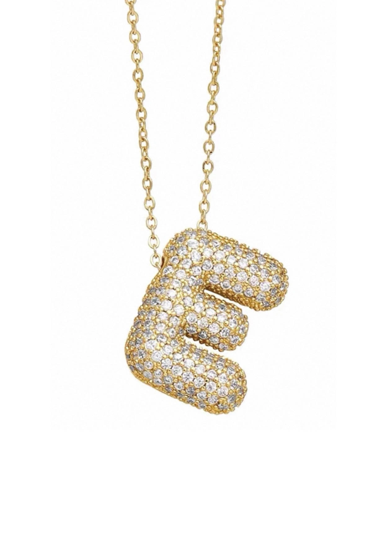 Altın Renk E Harf Taş Detaylı Çelik Kolye