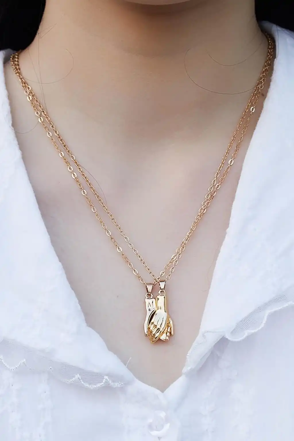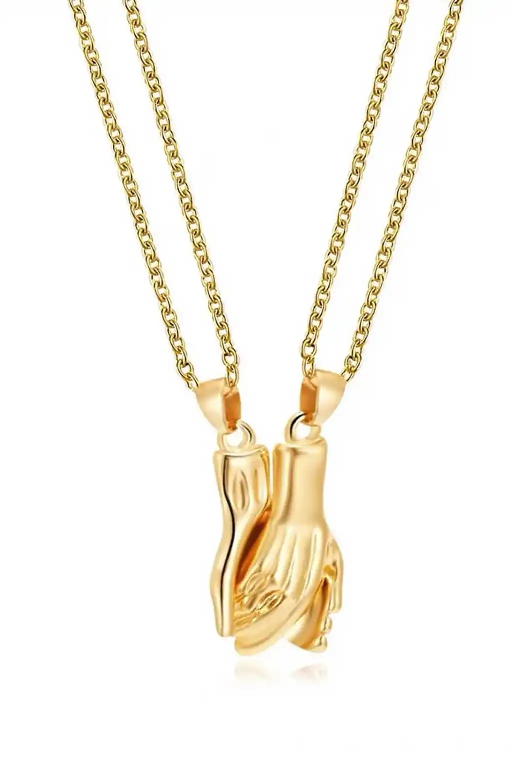 Altın Renk El Detaylı Mıknatıslı Çelik Sevgili/Arkadaş Kolyesi
