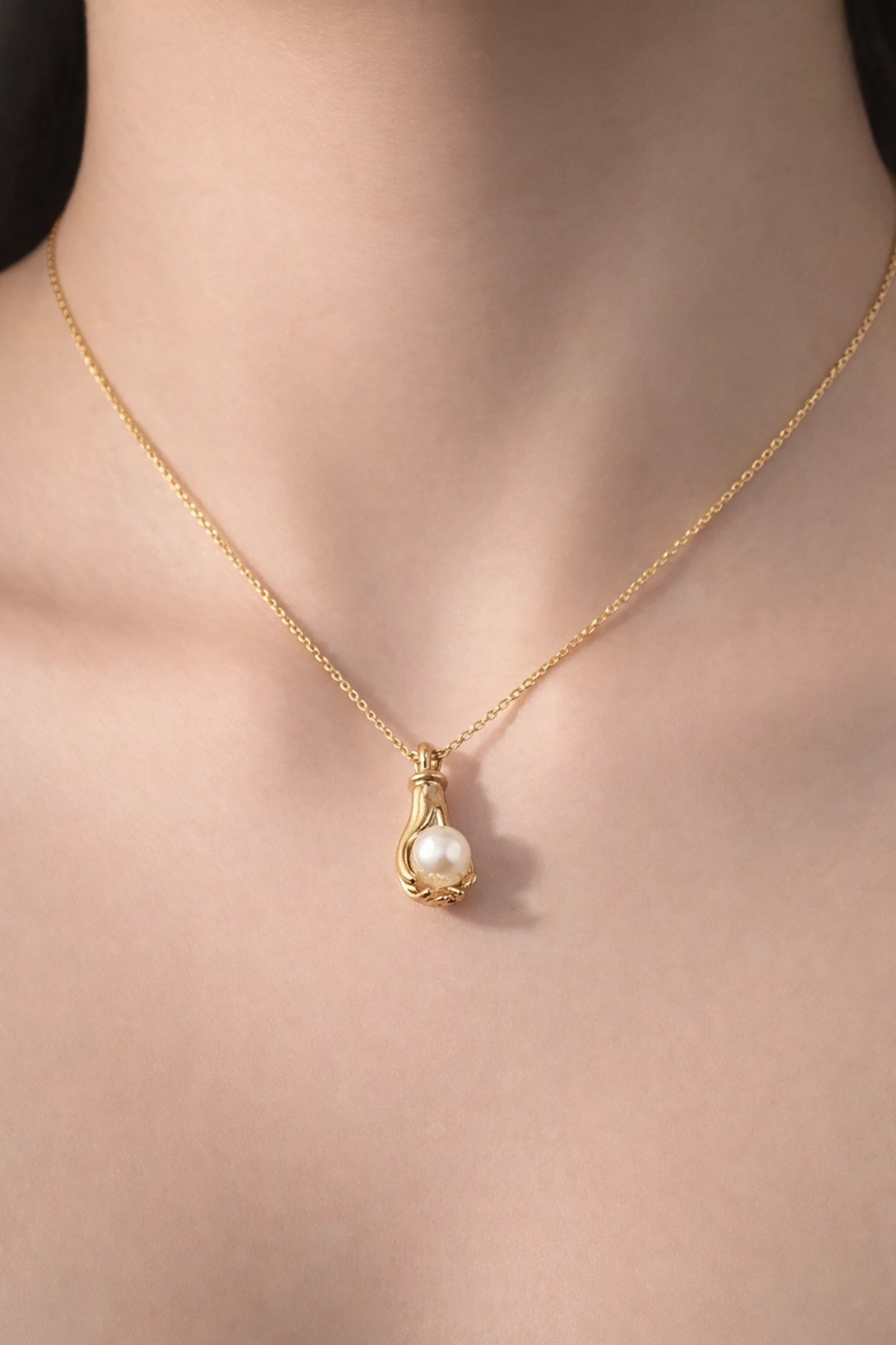 Altın Renk El Figürlü İnci Detaylı Çelik VİP Xuping Kolye