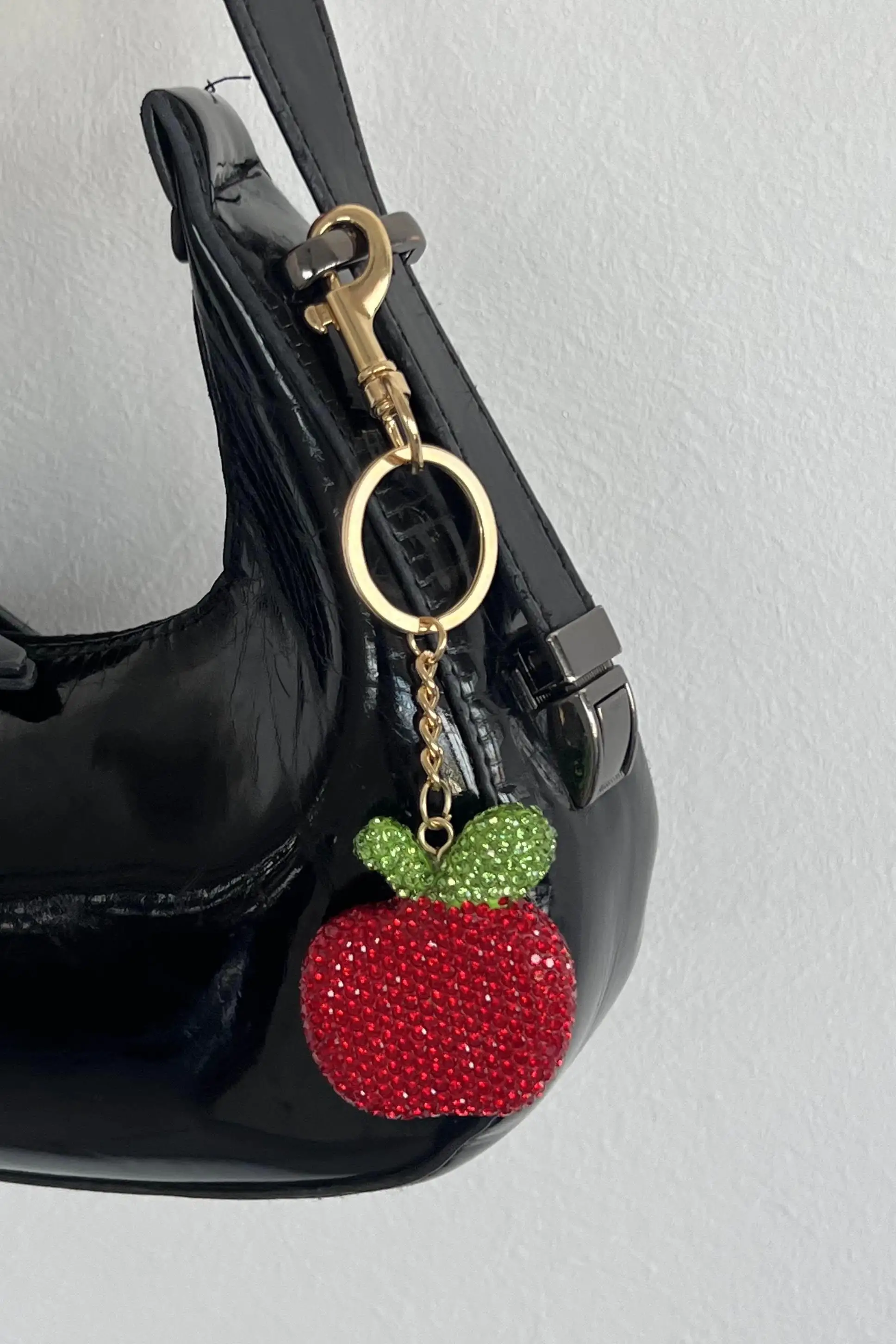 Altın Renk Elma Figürlü Taş Detaylı Çanta Charm/ Anahtarlık