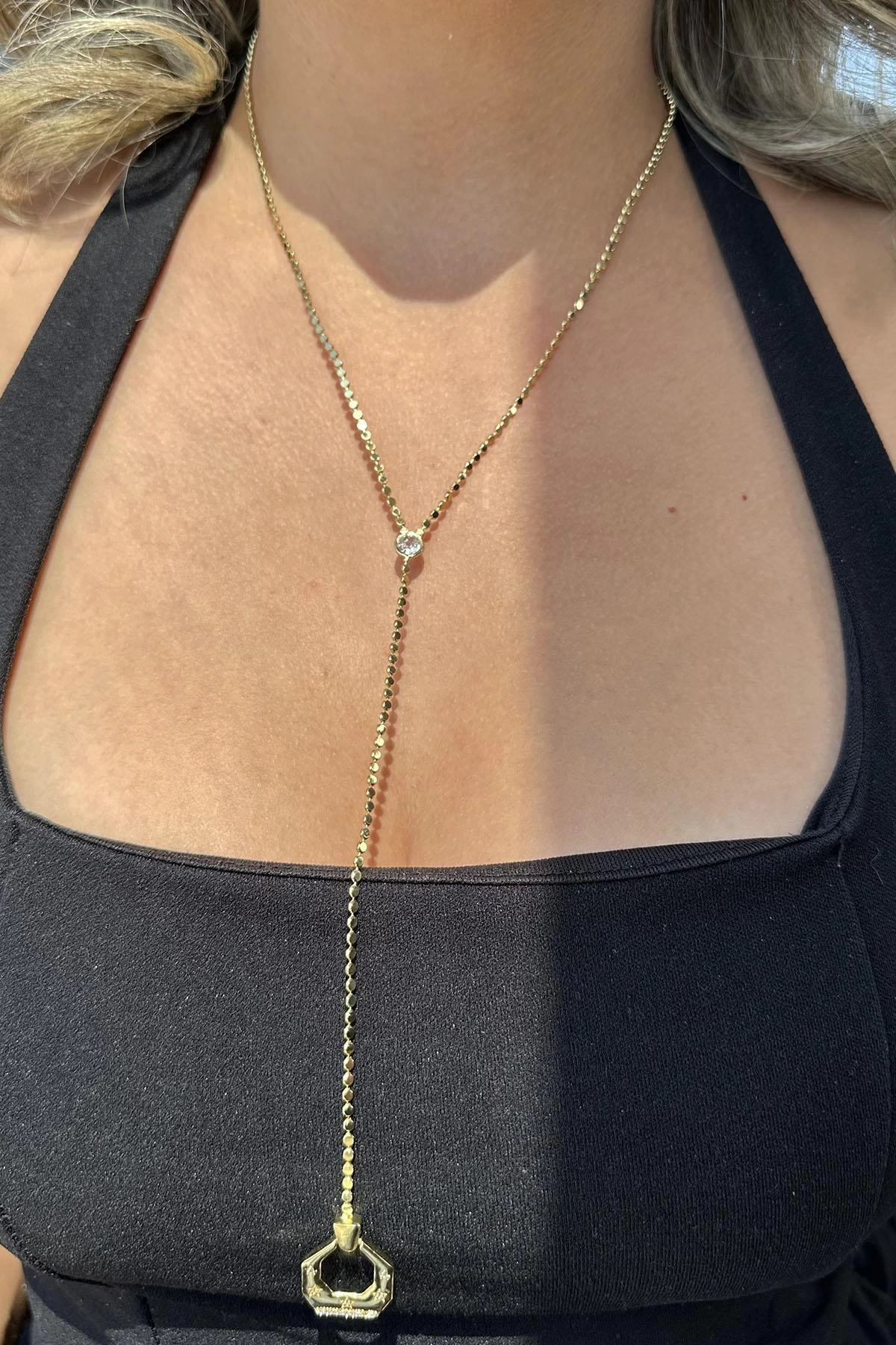 Altın Renk Ezme Zincir Detaylı Y Kolye