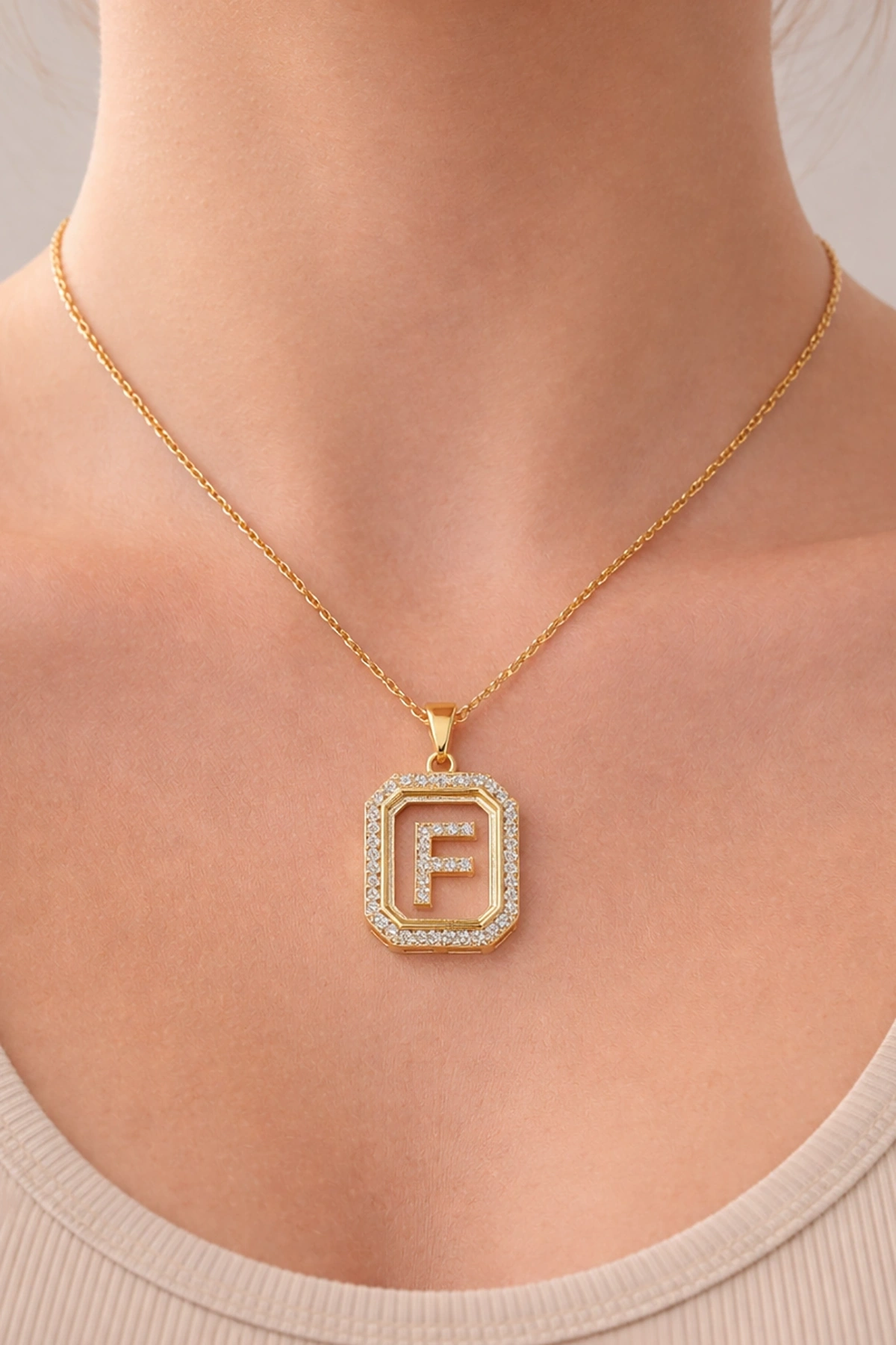 Altın Renk F Harf Taş Detaylı Çelik Kolye