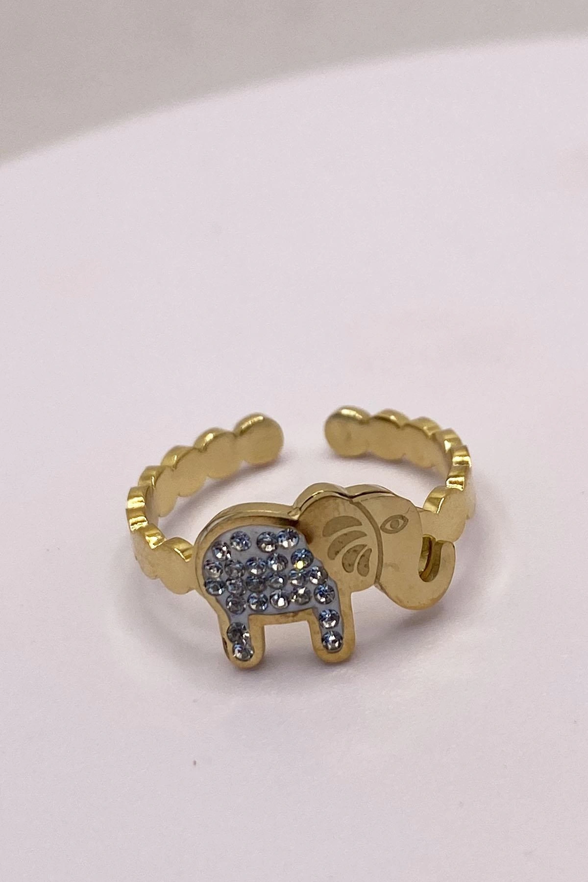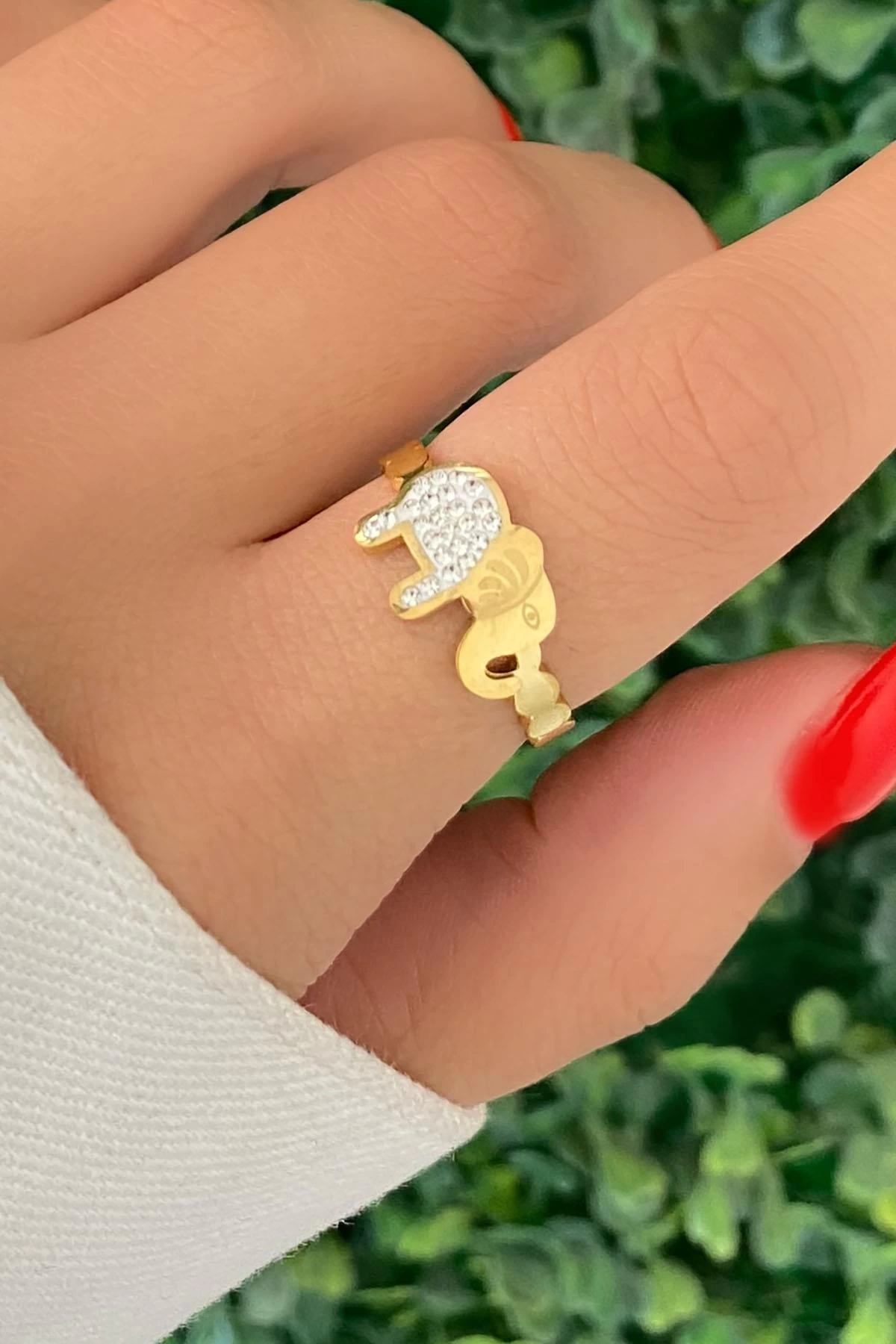 Altın Renk Fil Figürlü Ayarlanabilir Çelik Yüzük