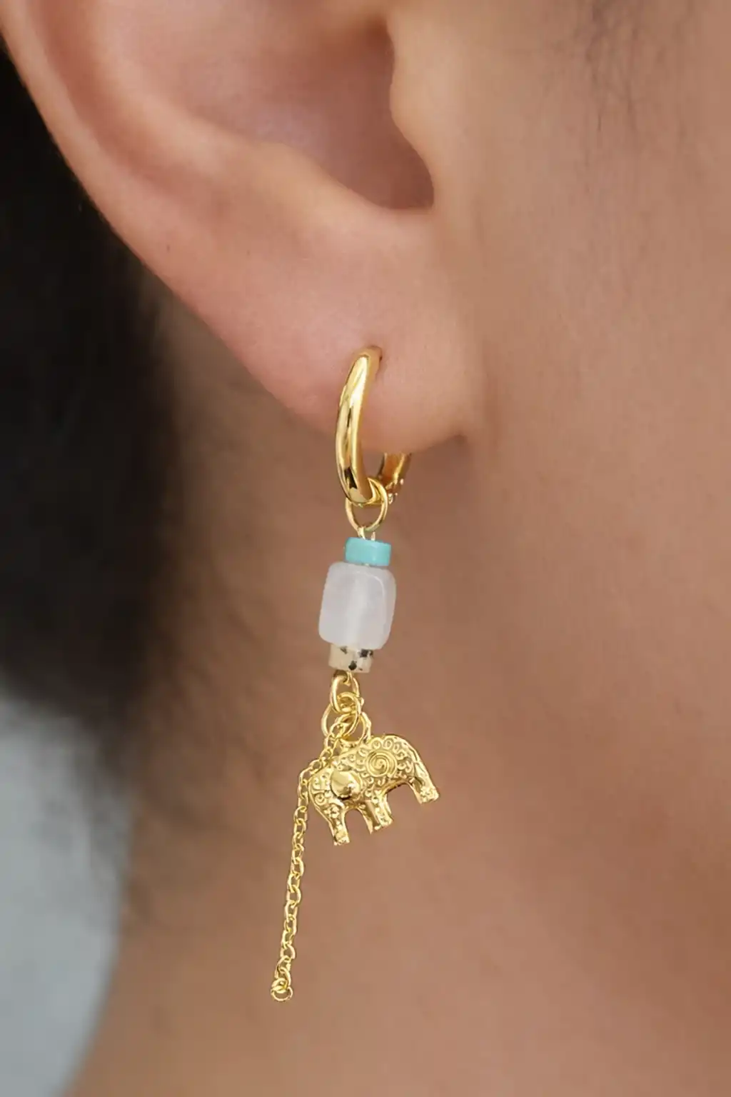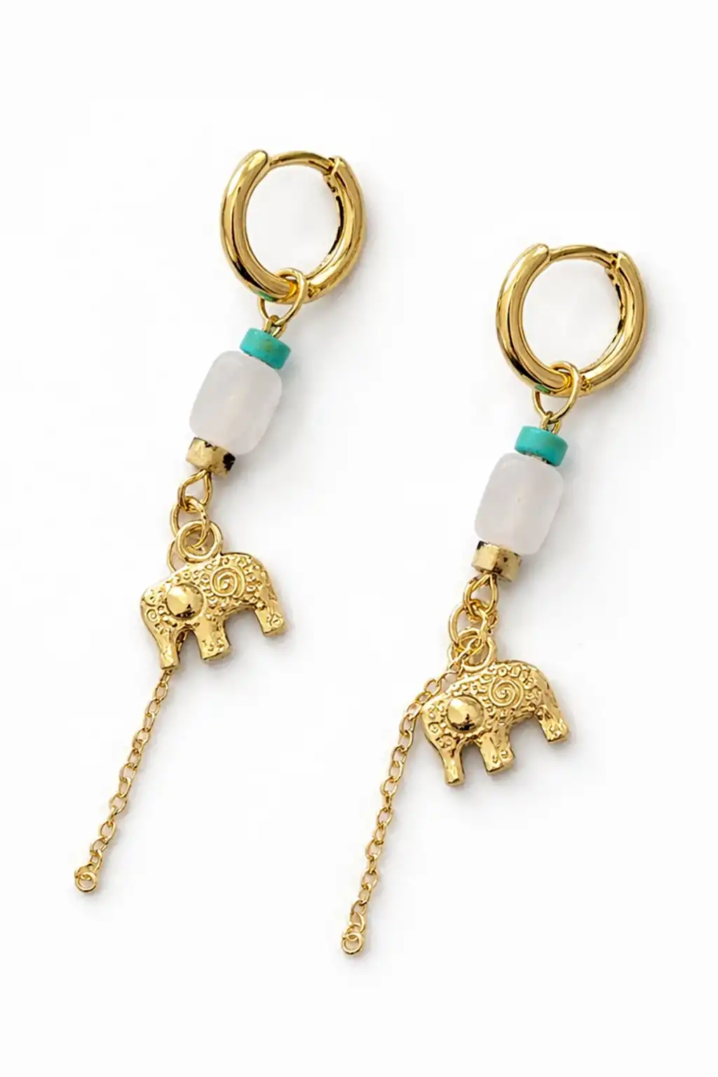 Altın Renk Fil Figürlü Taş Detaylı Küpe (Çift)