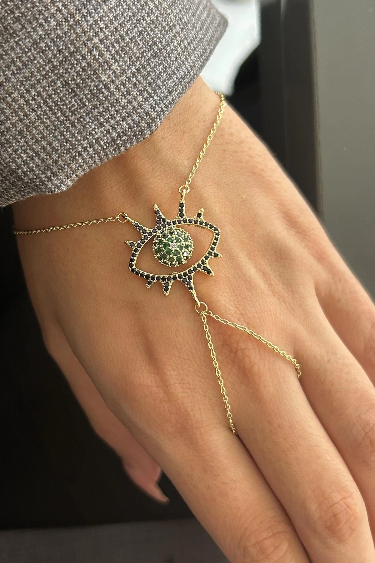 Altın Renk Göz Figürlü 14K Altın Kaplama TX Şahmeran
