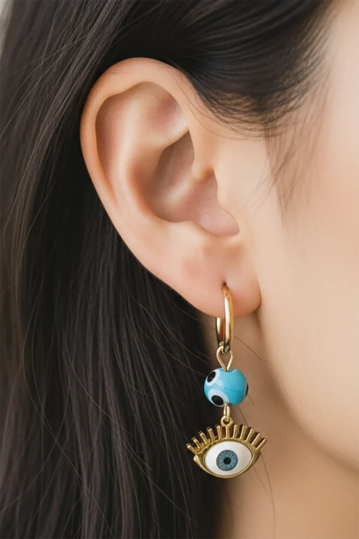Altın Renk Göz Figürlü Çelik Halka Küpe (Çift)