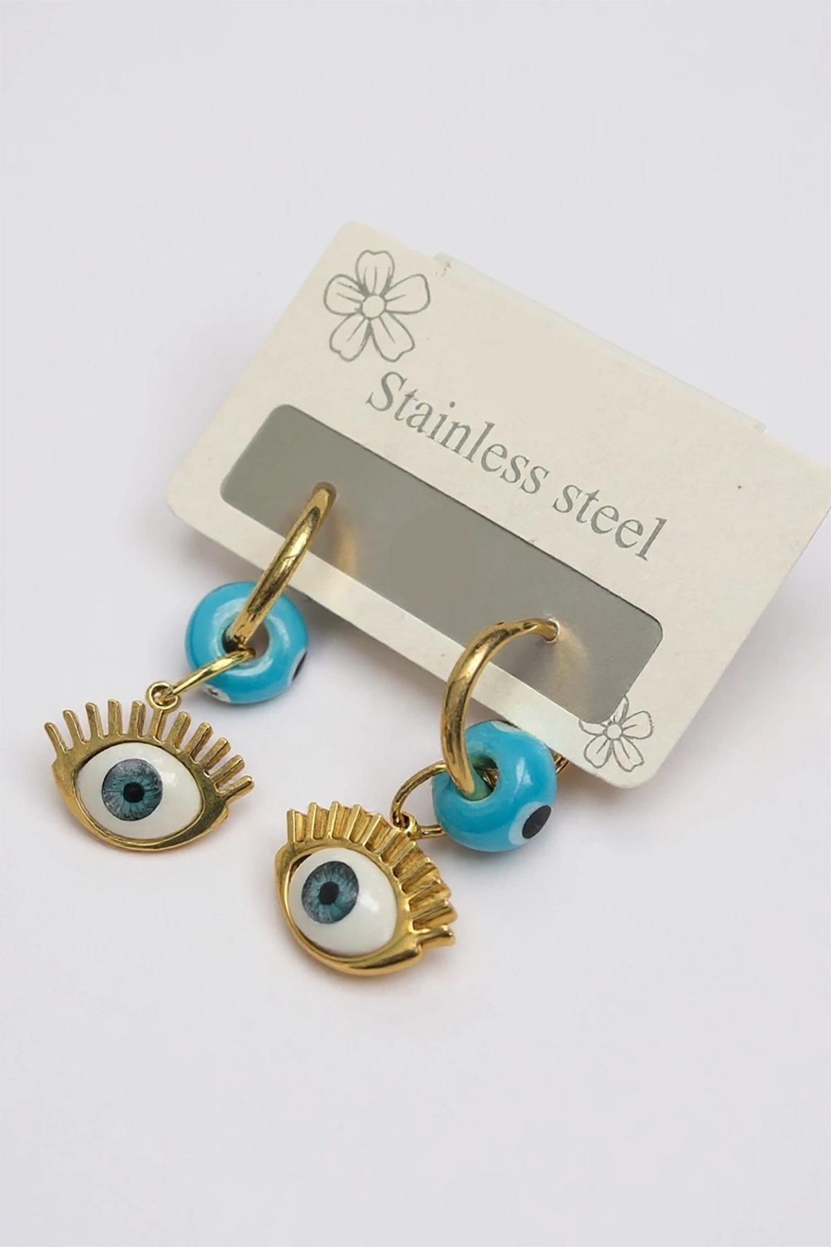 Altın Renk Göz Figürlü Çelik Küpe (Çift)