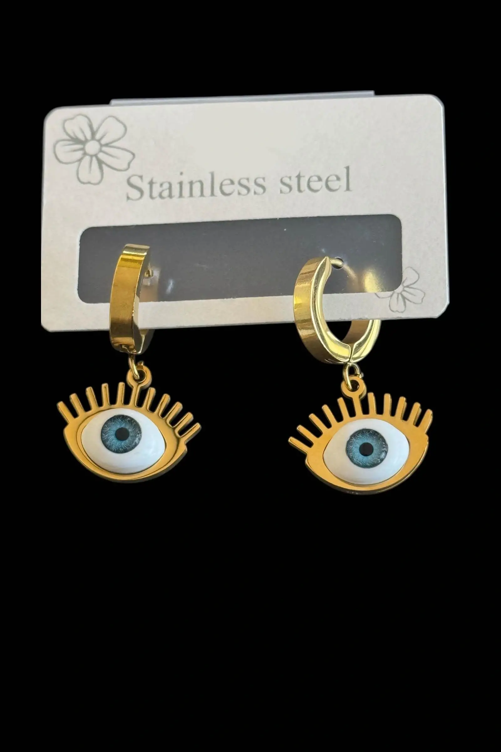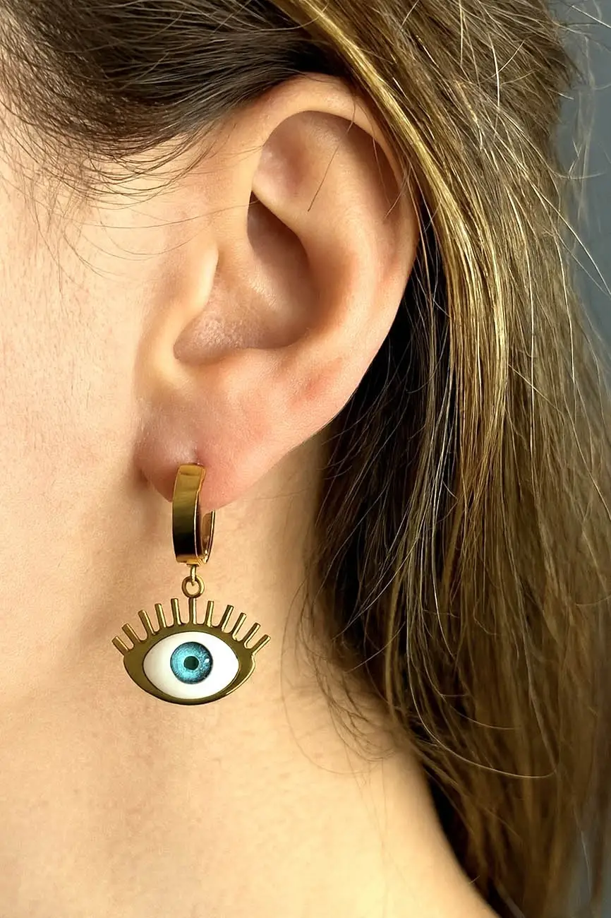Altın Renk Göz Figürlü Çelik Küpe (Çift)