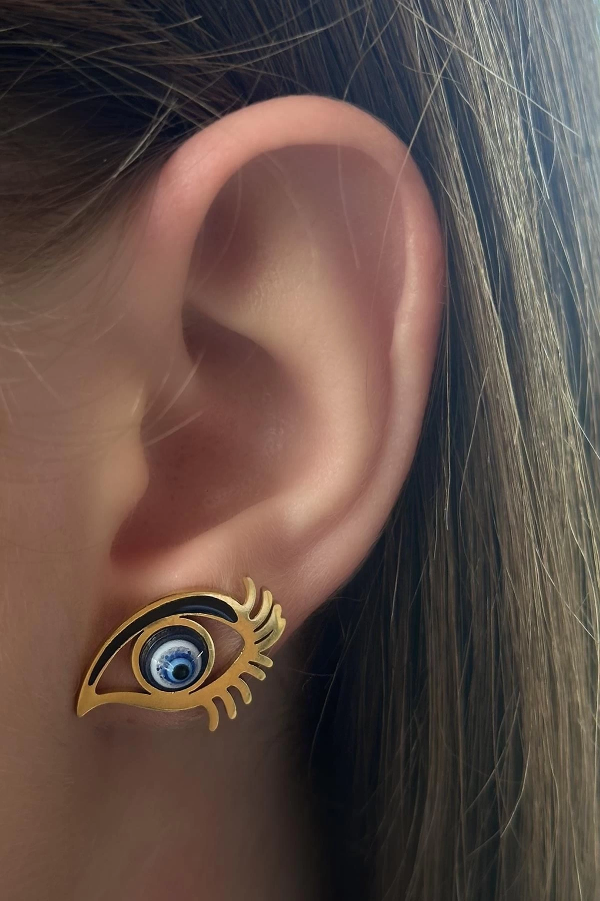 Altın Renk Göz Figürlü Çelik Küpe (Çift)