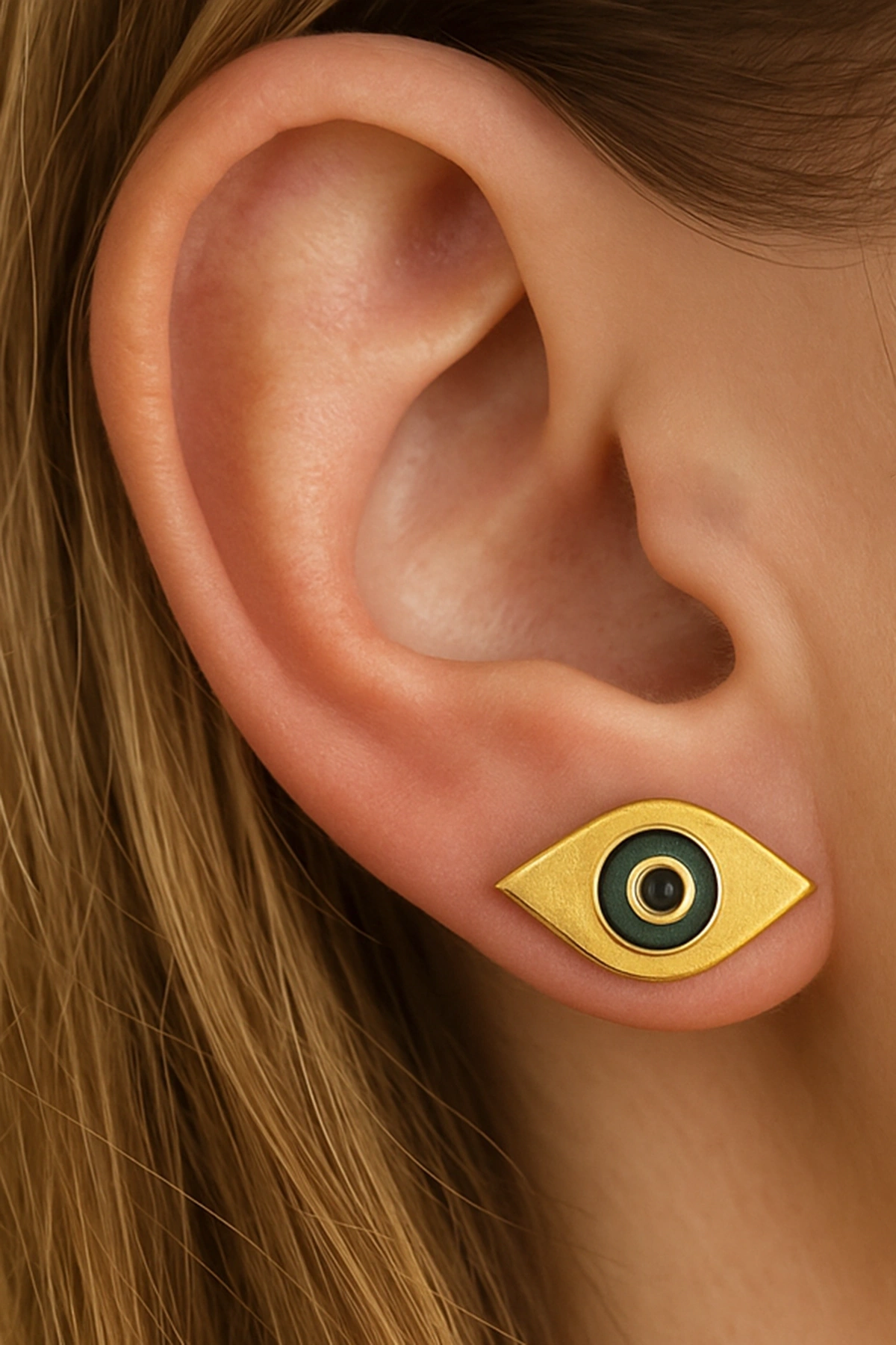Altın Renk Göz Figürlü Çelik Küpe (Çift)