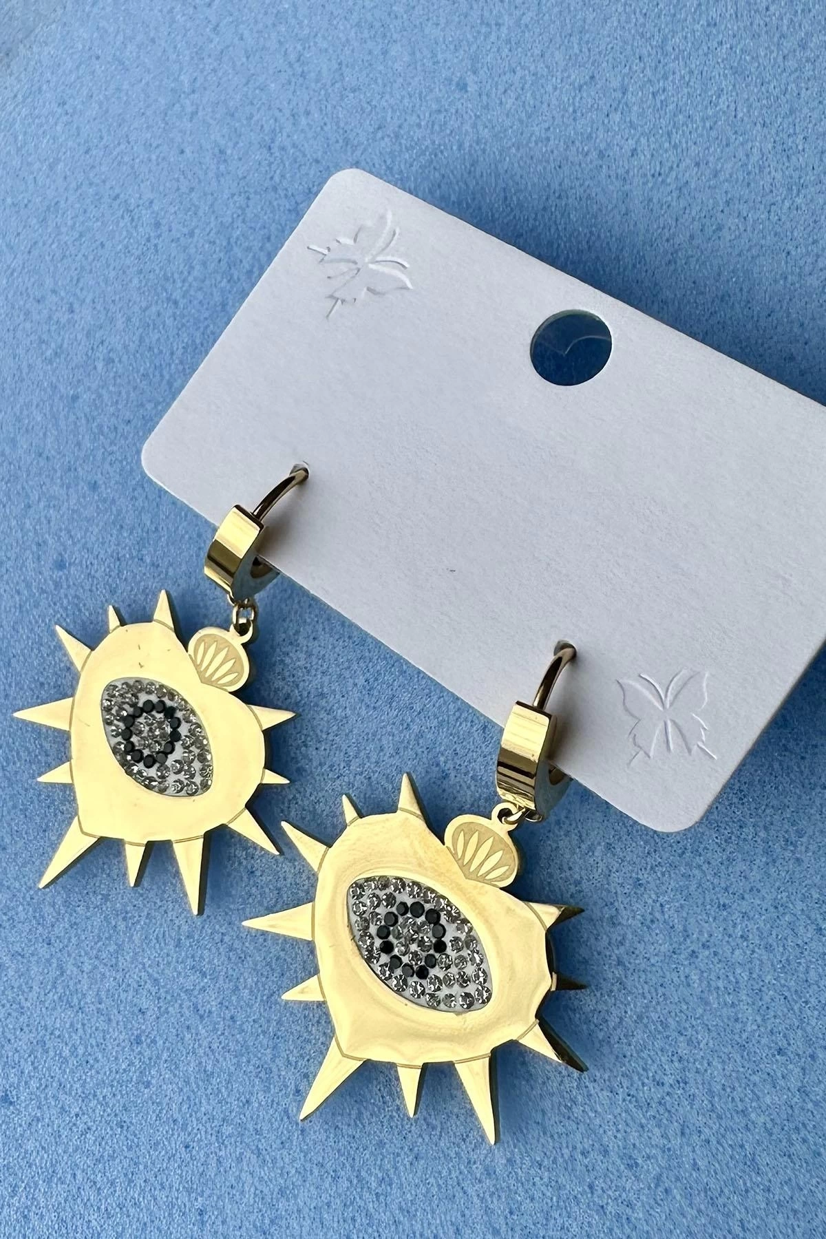 Altın Renk Göz Figürlü Çelik Küpe (Çift)