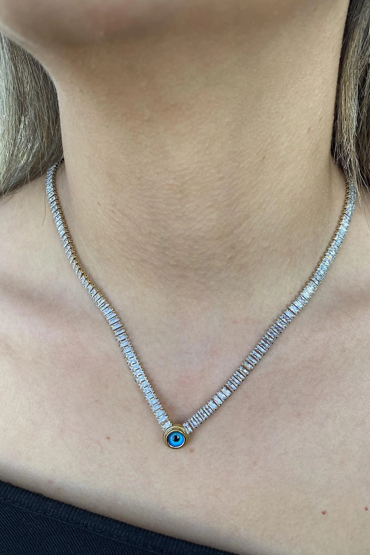 Altın Renk Göz Figürlü Su Yolu Çelik Kolye
