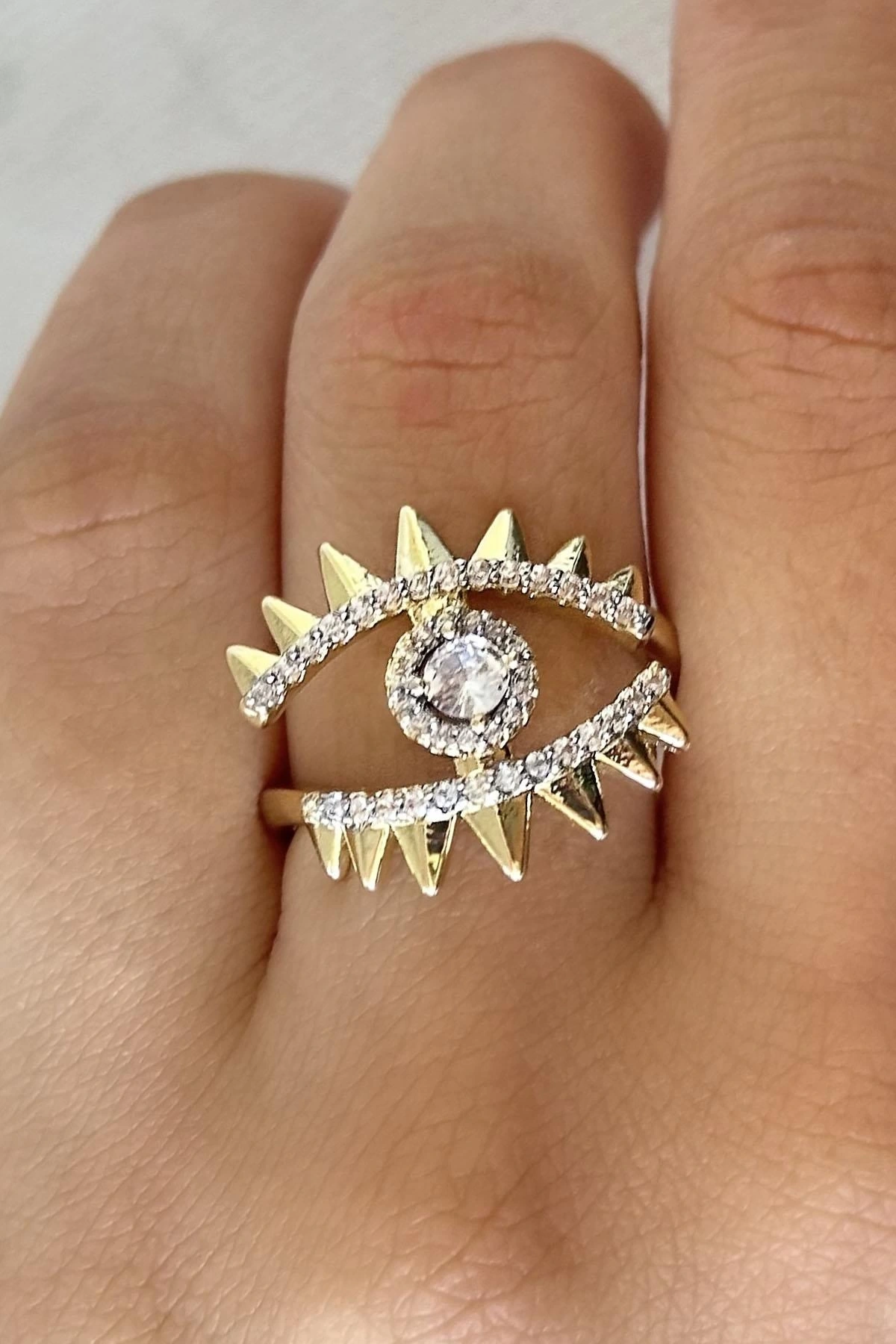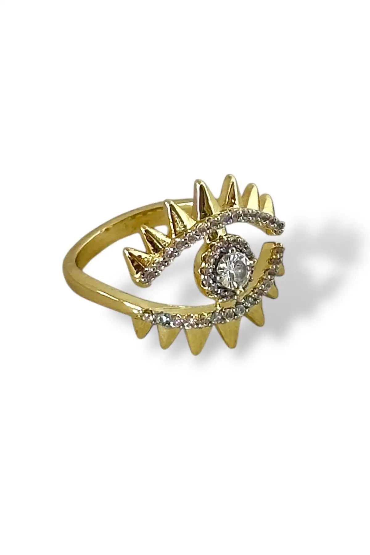 Altın Renk Göz Figürlü Taş Detaylı Ayarlanabilir Yüzük