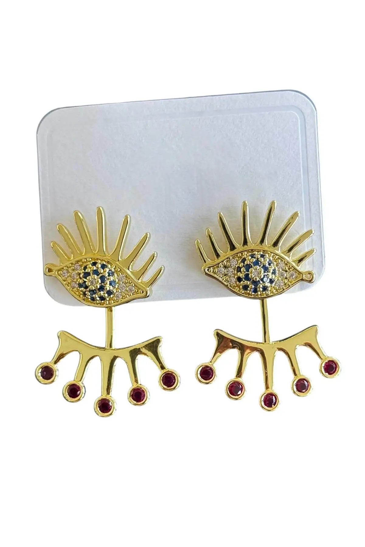 Altın Renk Göz Figürlü Taş Detaylı Küpe (Çift)