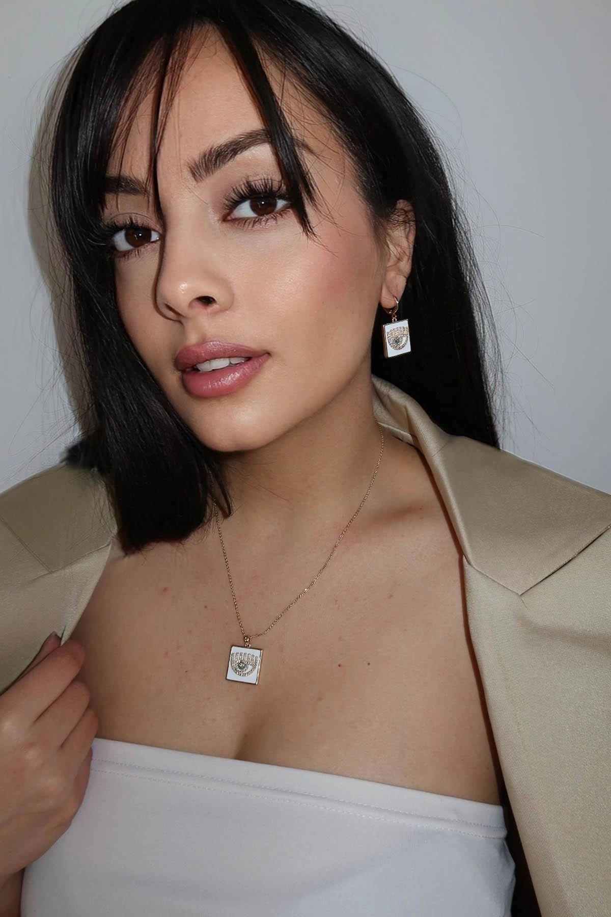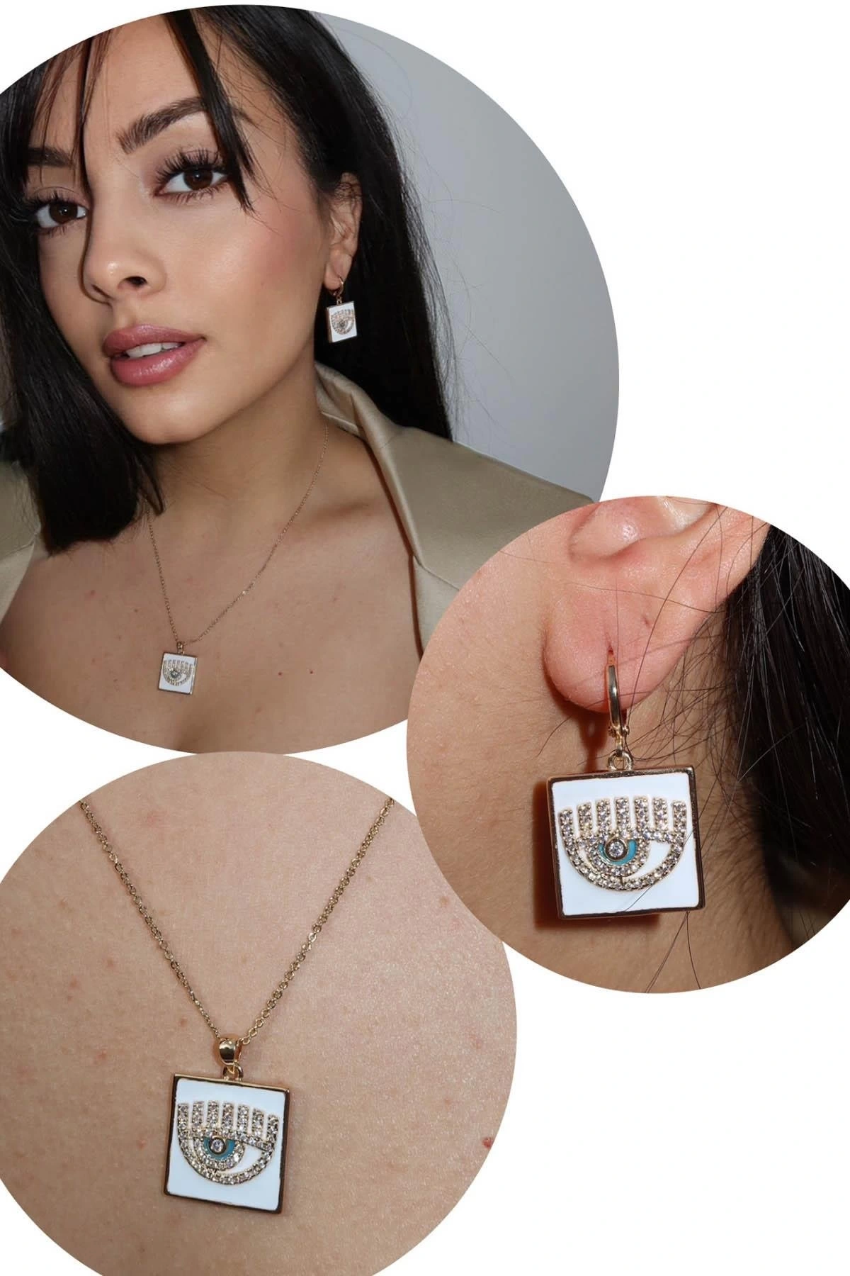 Altın Renk Göz Figürlü YSX Küpe Ve Kolye Set