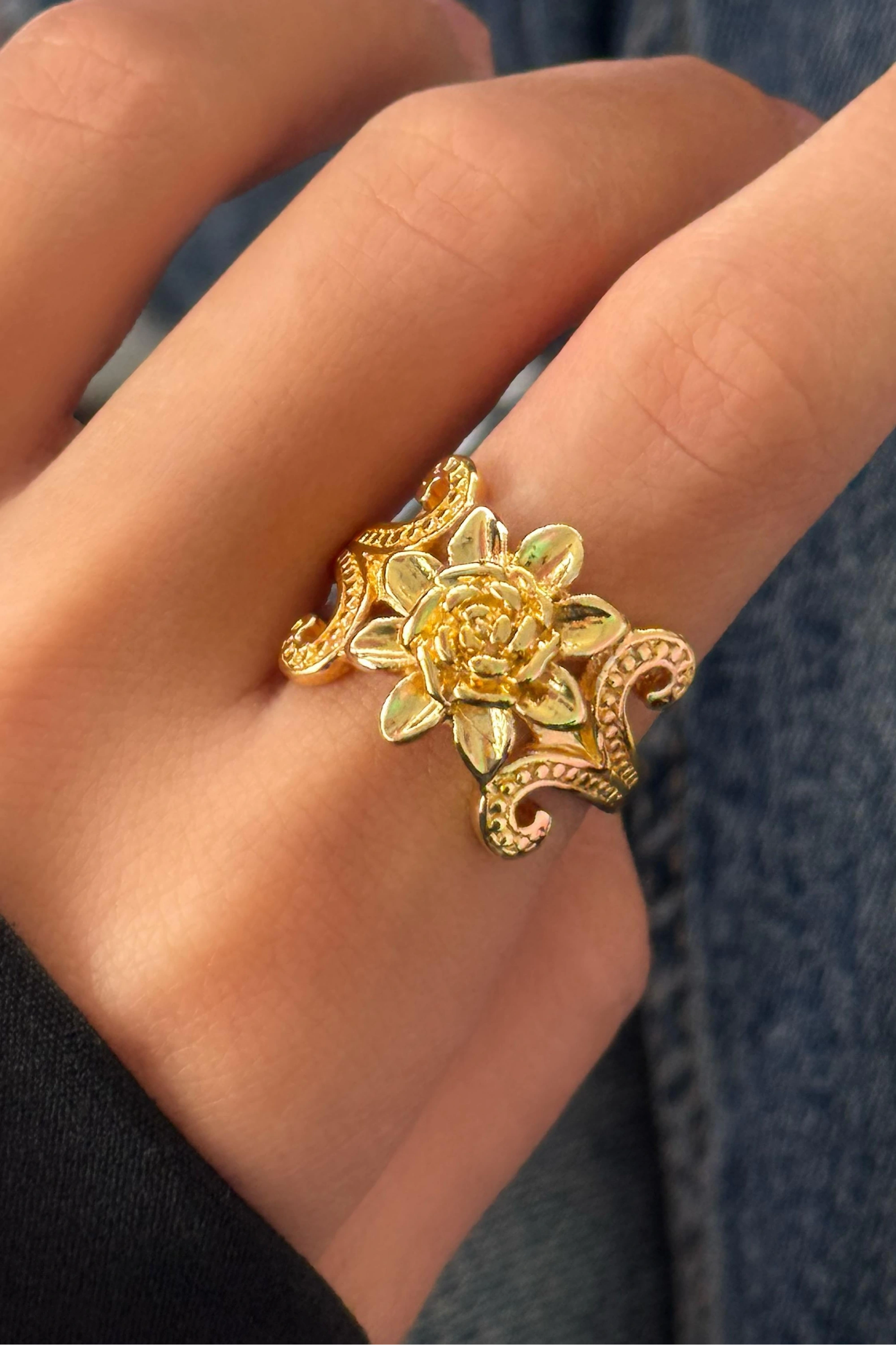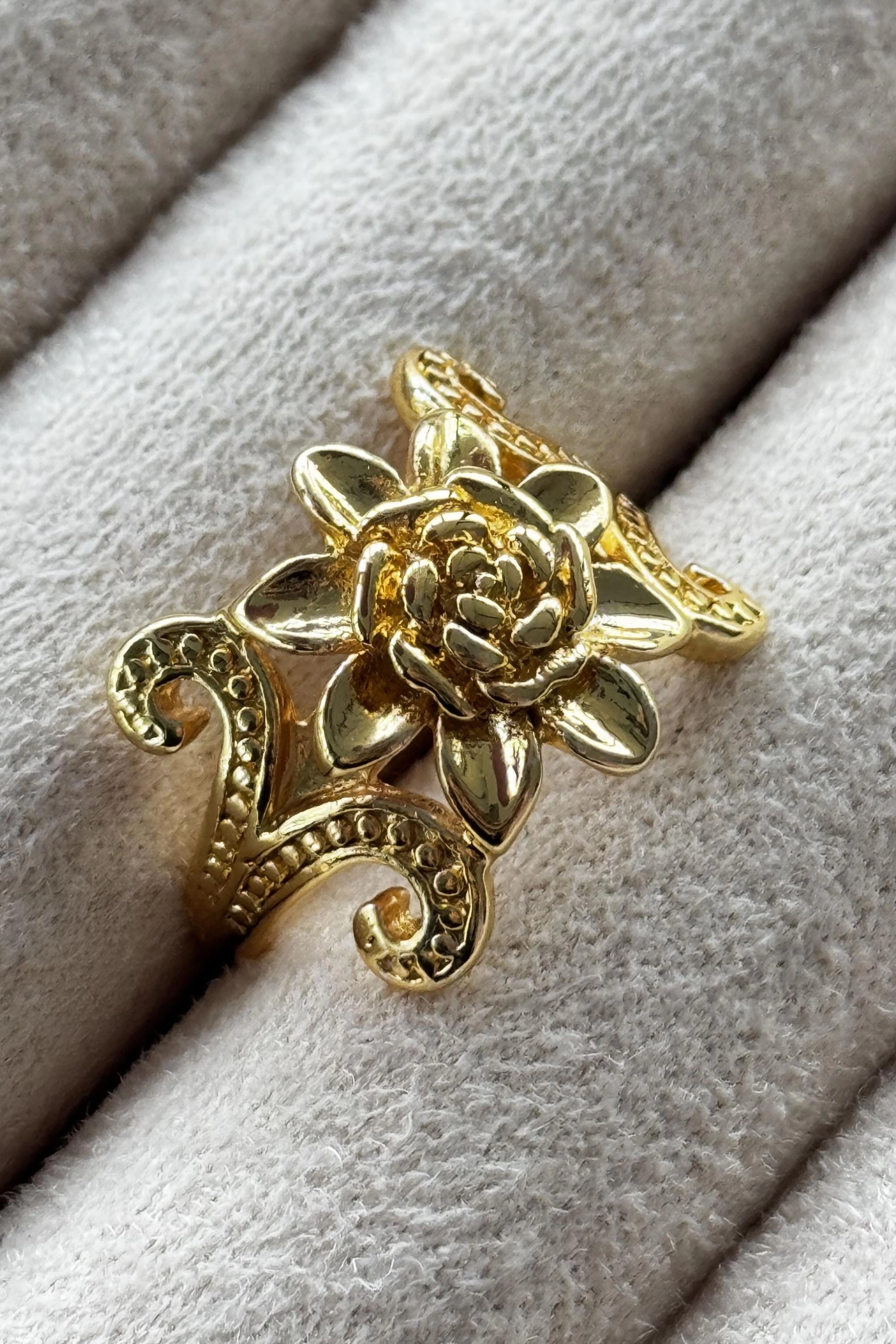 Altın Renk Gül Figürlü Metal Ayarlanabilir Yüzük