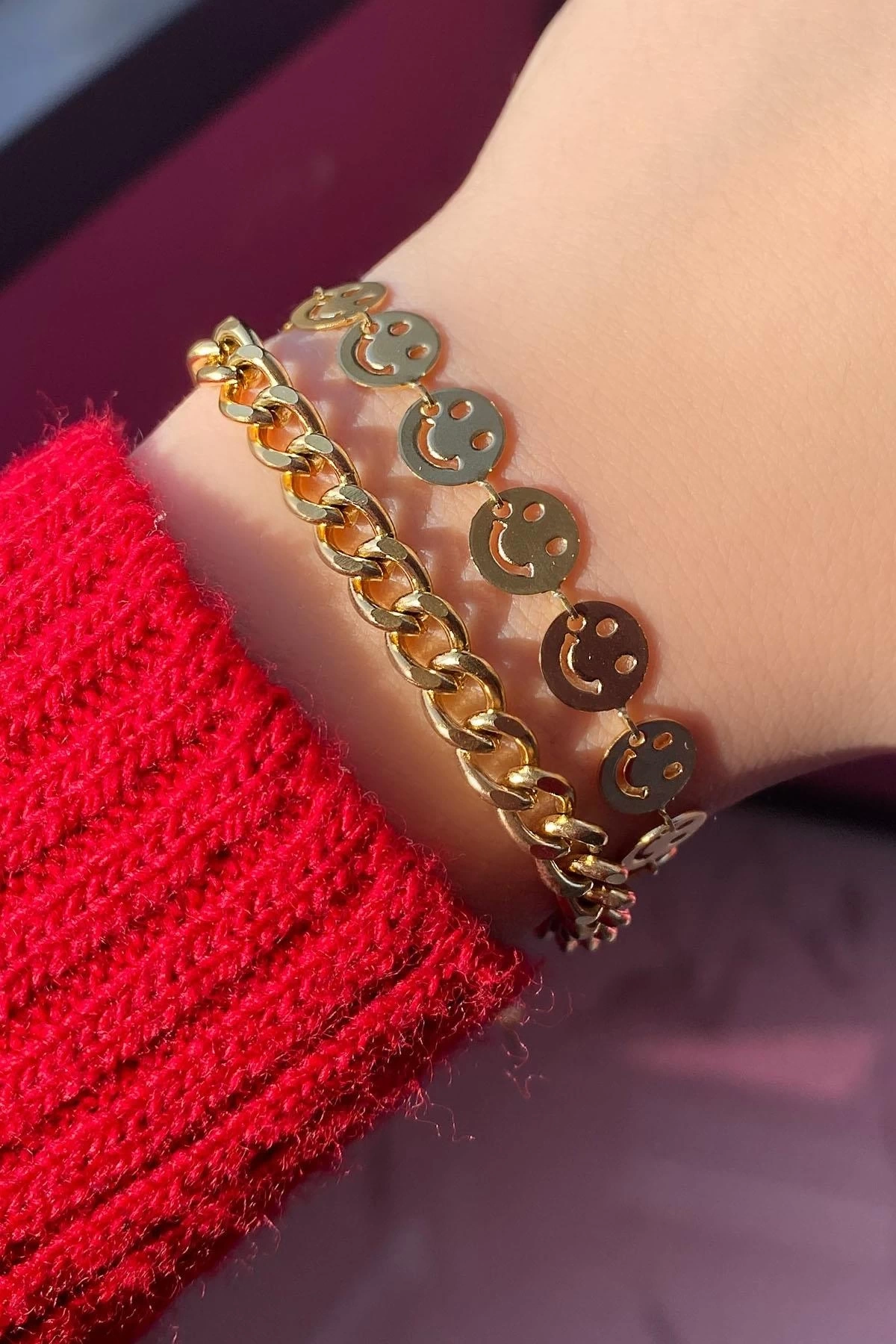 Altın Renk Gülen Yüz Figürlü Çelik Bileklik